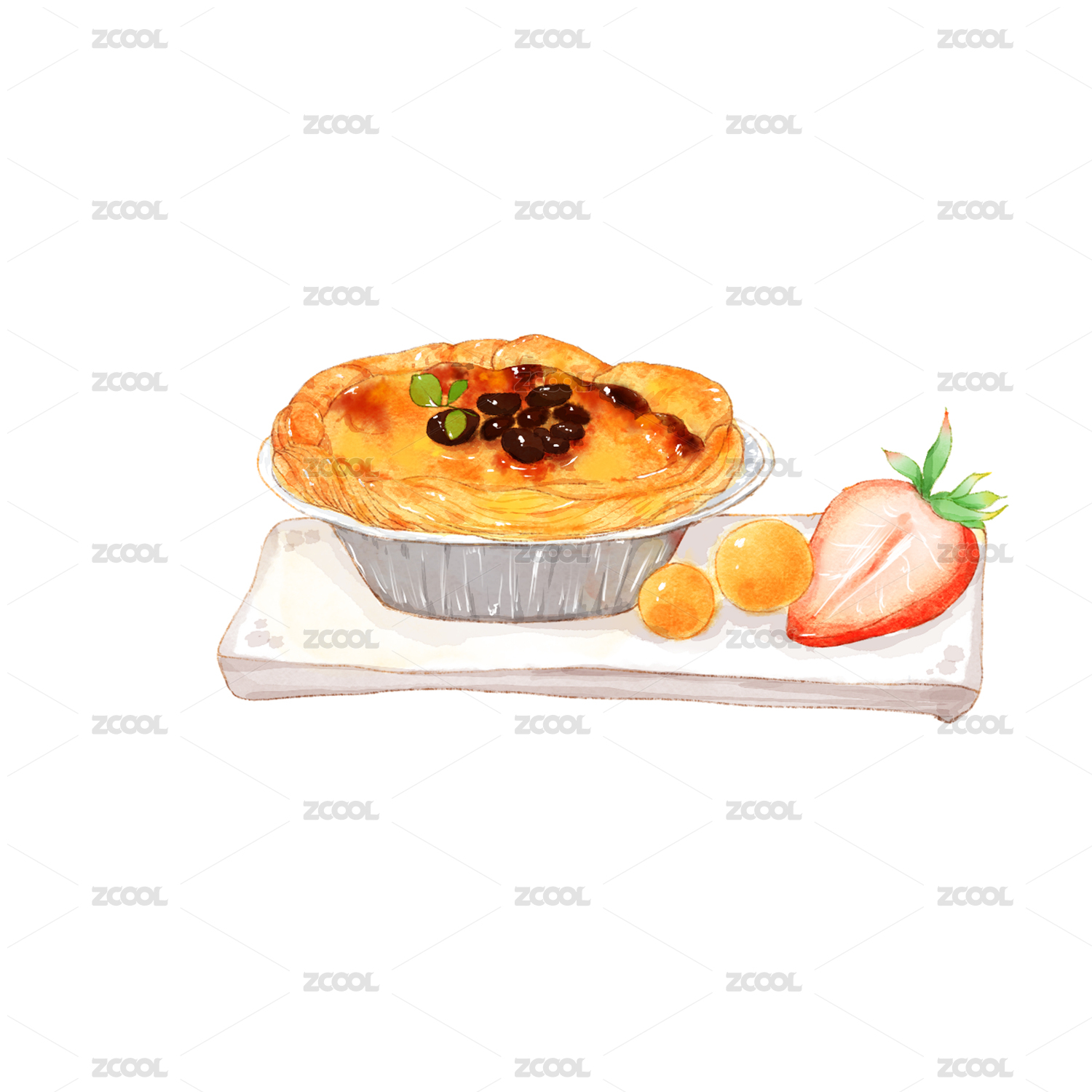 手绘,插画,蛋挞,治愈,食物,葡挞