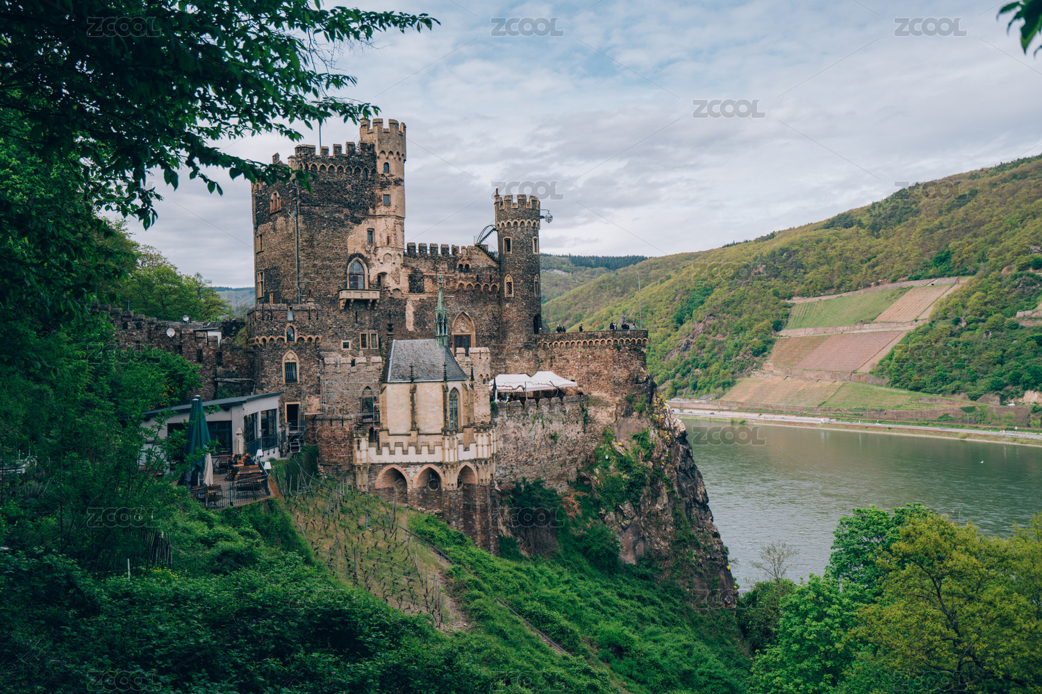 雄伟的莱因斯坦城堡,位于奔腾的德国莱茵河上