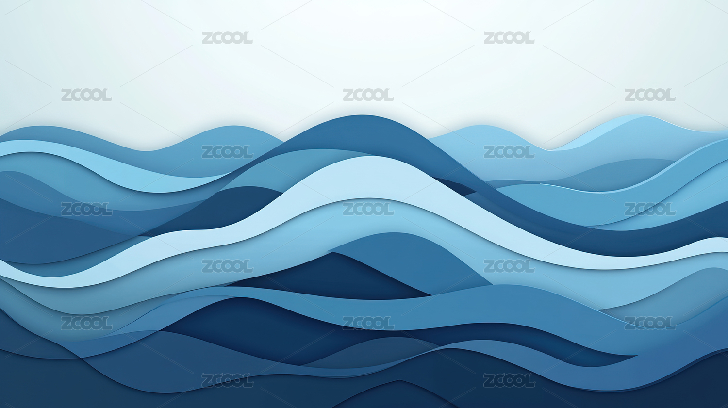 蓝色系渐变波浪曲线抽象背景图