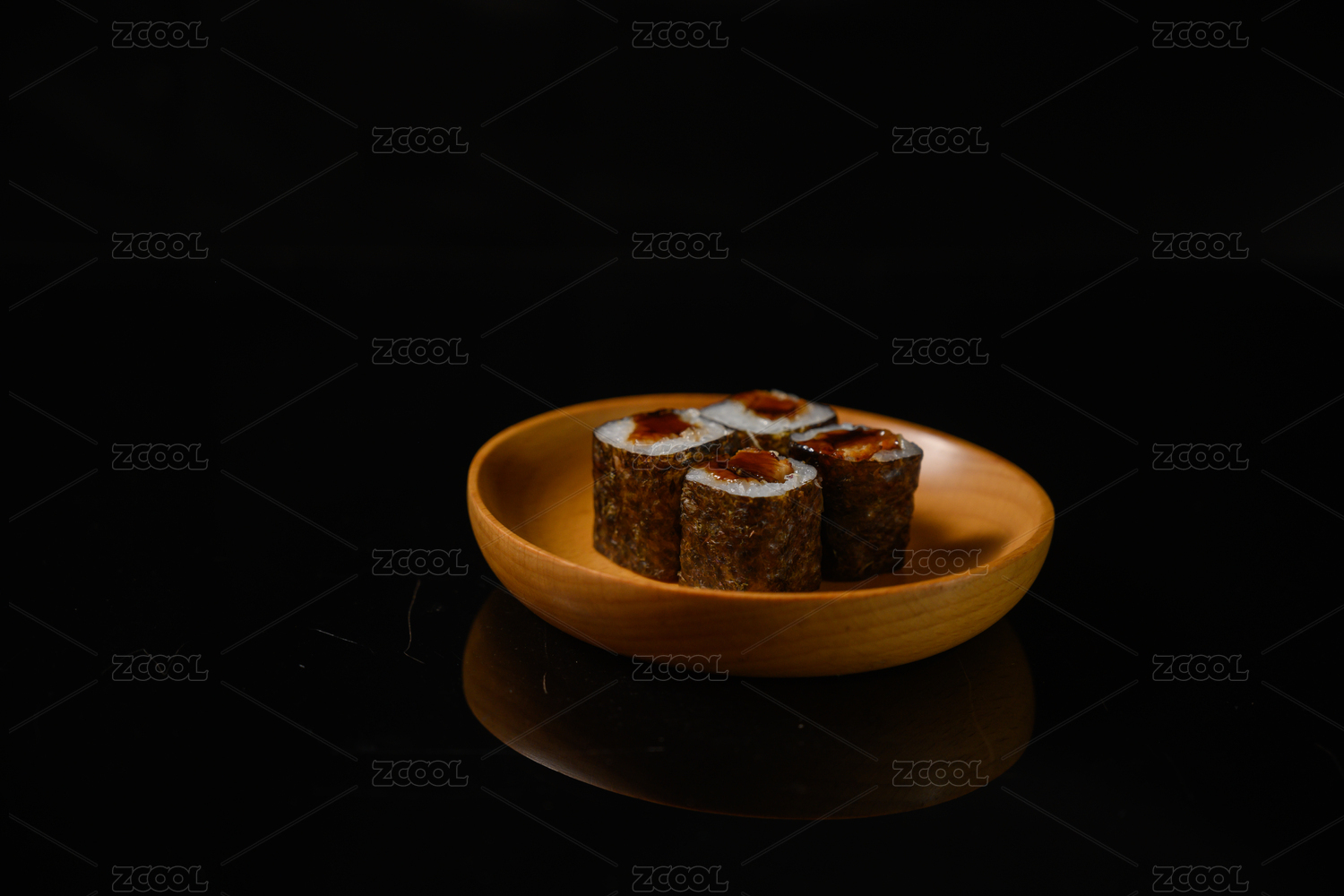 桌面上的盘子里的美味可口的吞拿鱼小卷