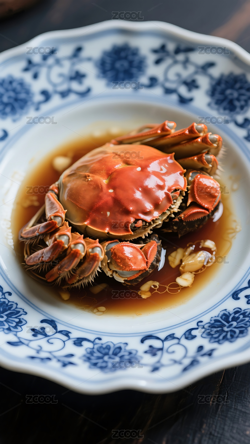 餐具中摆放的阳澄湖大闸蟹蟹黄