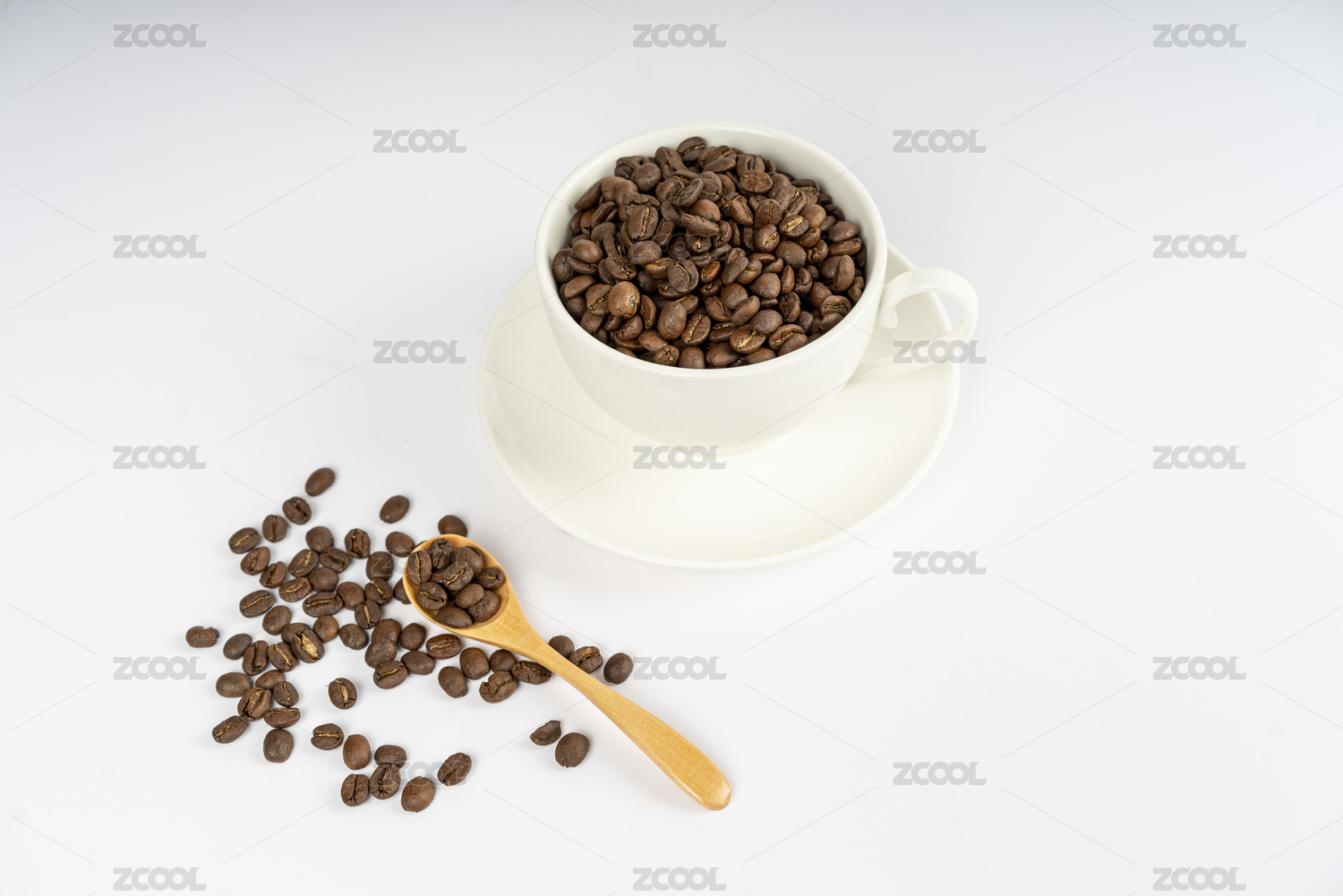 白色的咖啡杯和咖啡豆