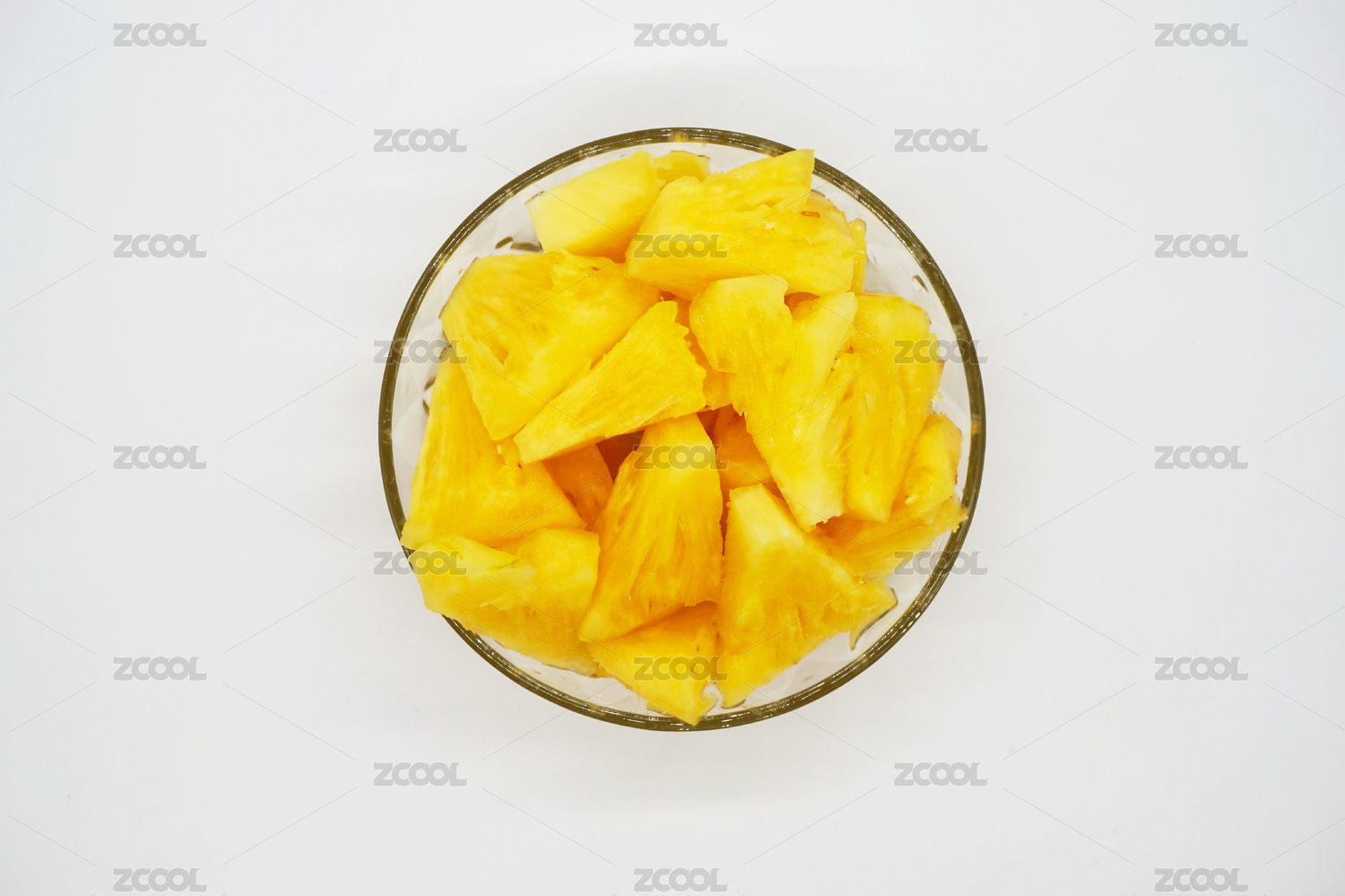 菠萝,绿色背景,水晶碗,水果,黄色,切,切块,饮食,生鲜,维生素