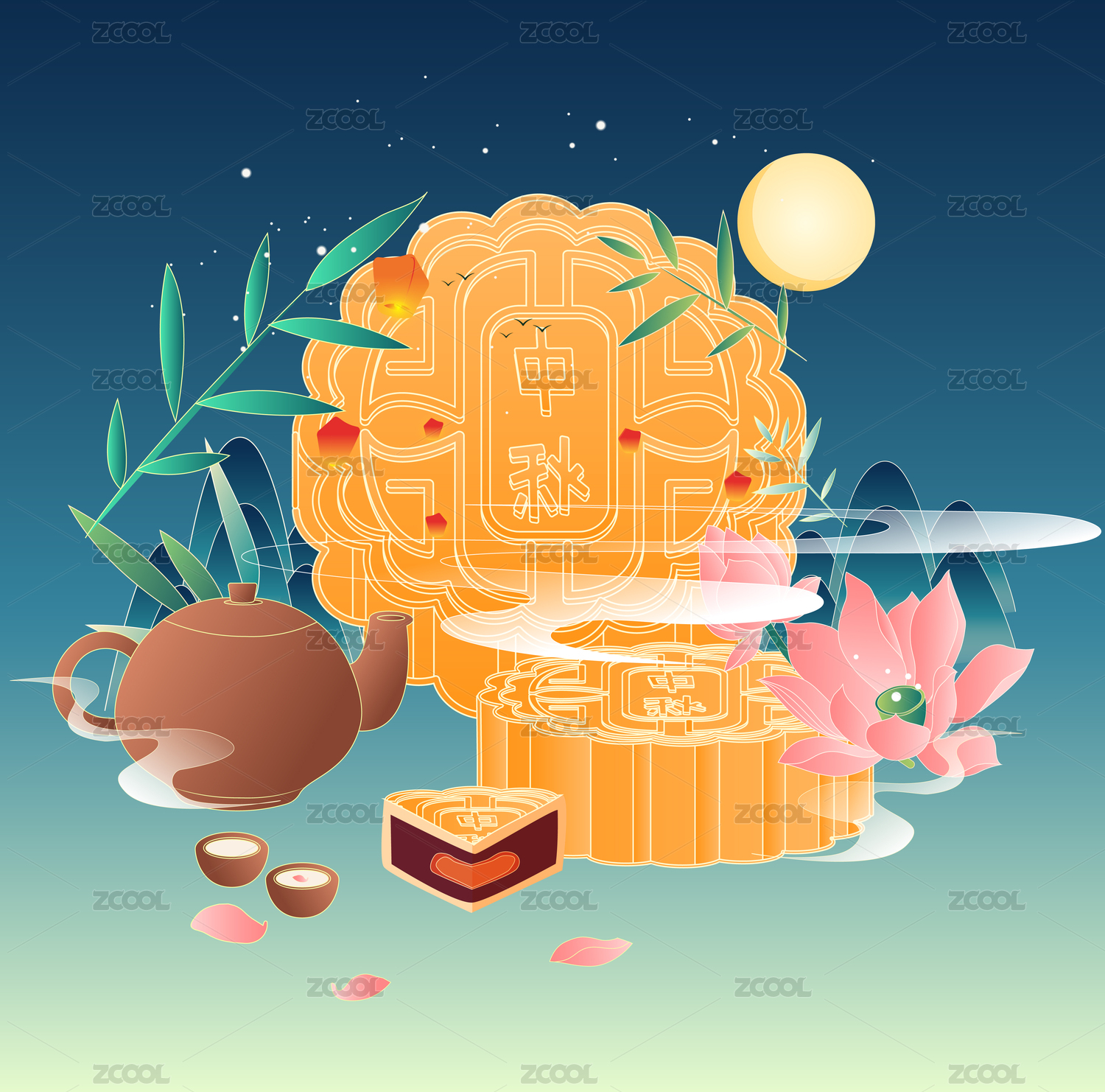 节日,传统,传统节日,中国,插图,中秋,中秋节,背景,满月,礼物