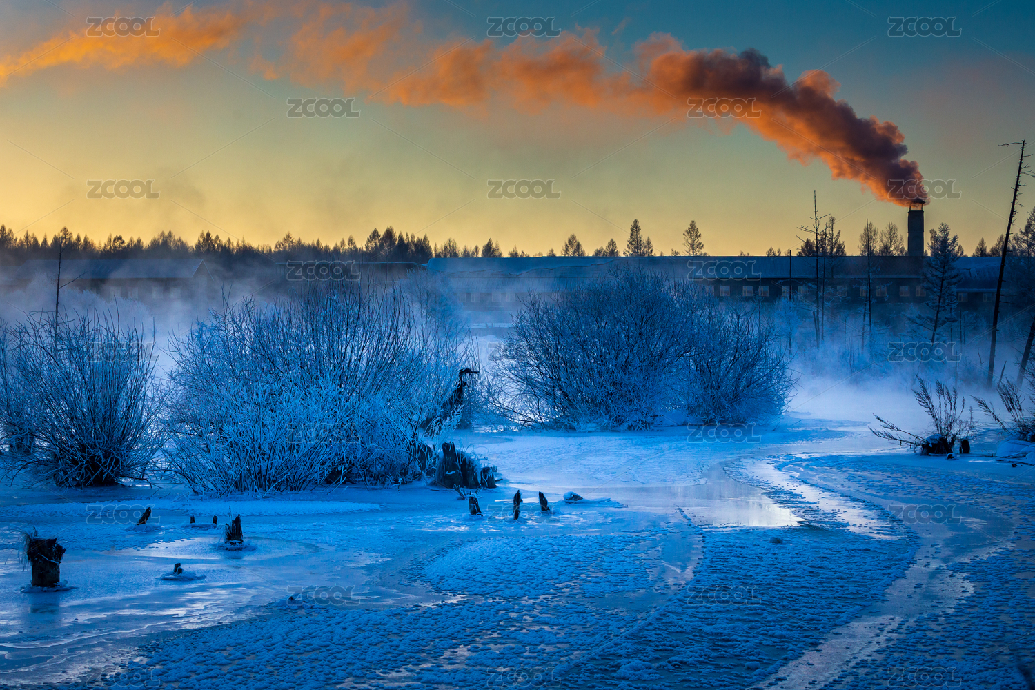中国吉林延边长白山下魔界雾凇冰凌日出