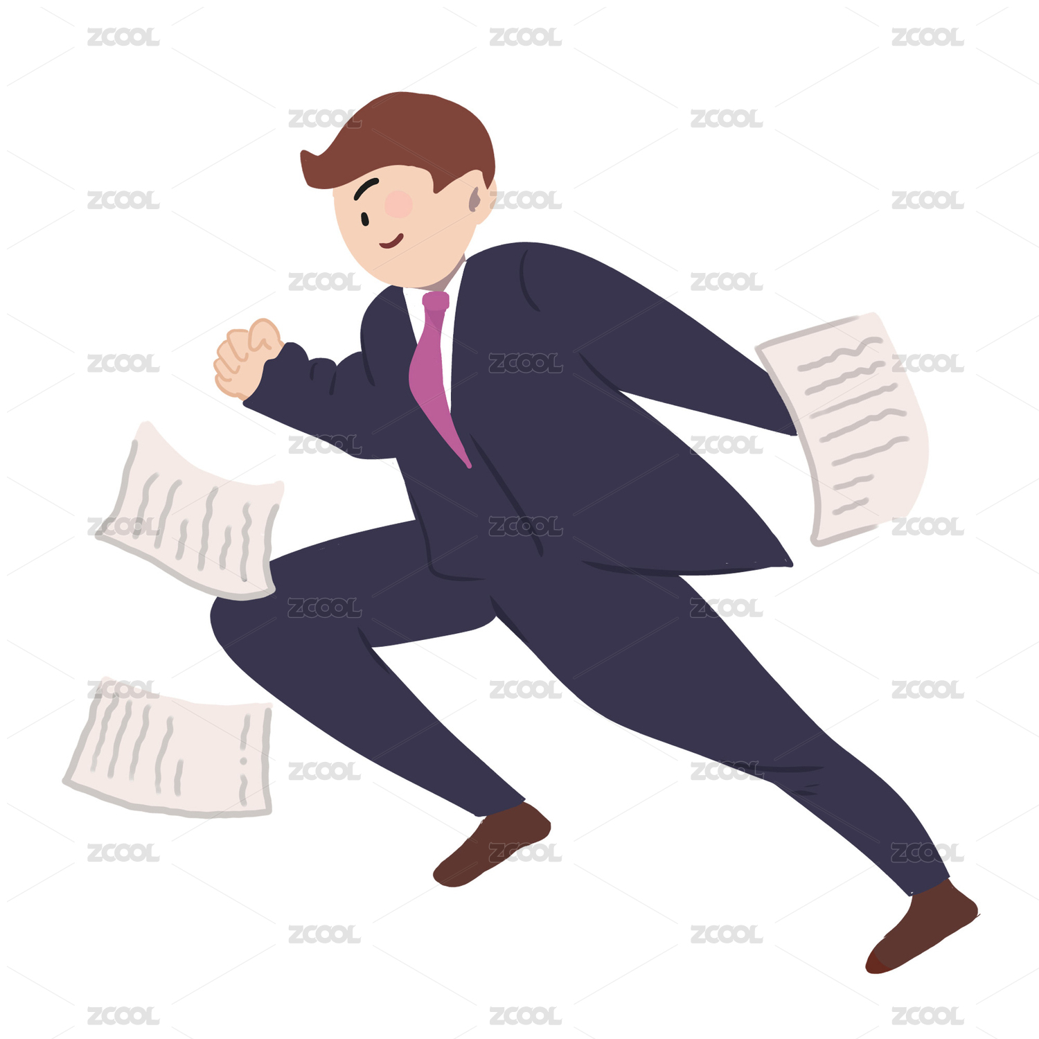 一个闭着眼睛背着单肩包飞奔的穿西装的男人