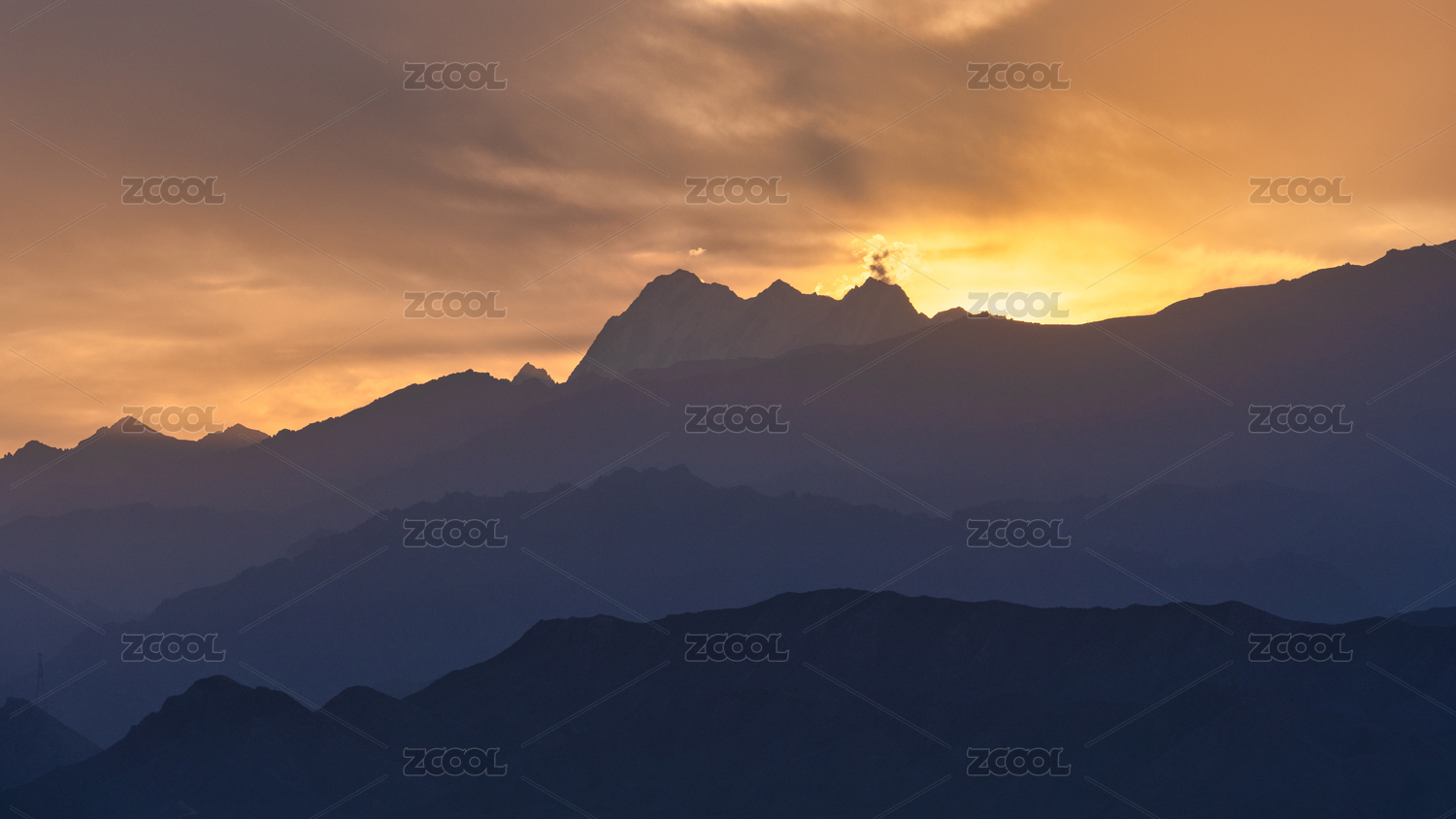 中国新疆天山山脉东段最高峰博格达峰霞光