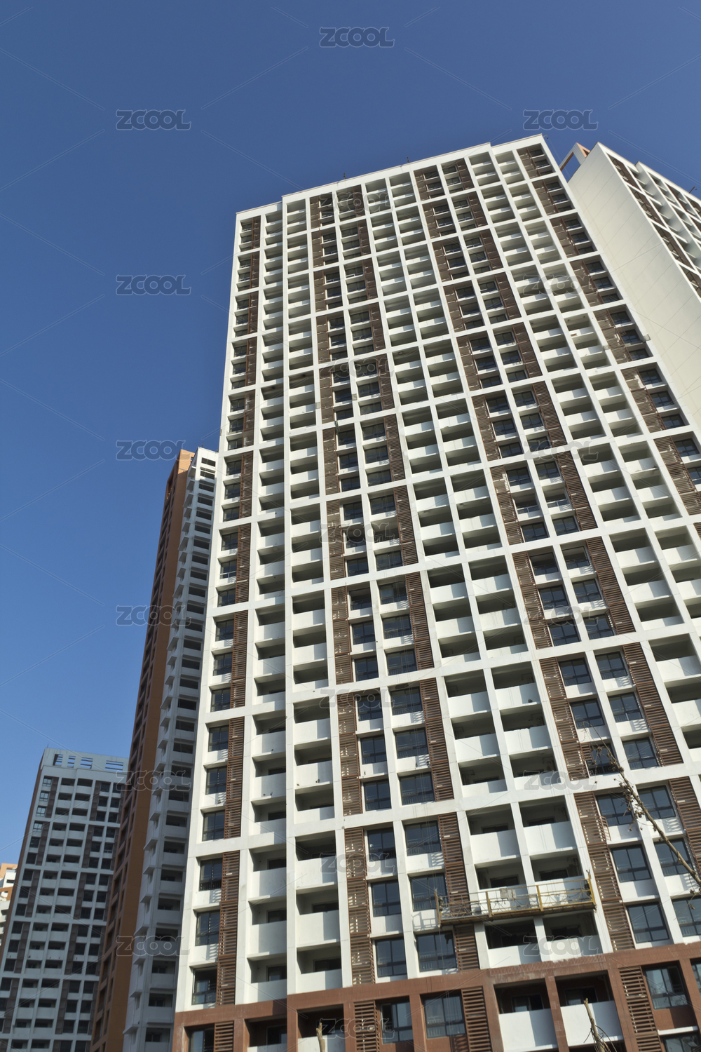 城市密集的房地产楼盘住宅公寓玻璃窗幕墙
