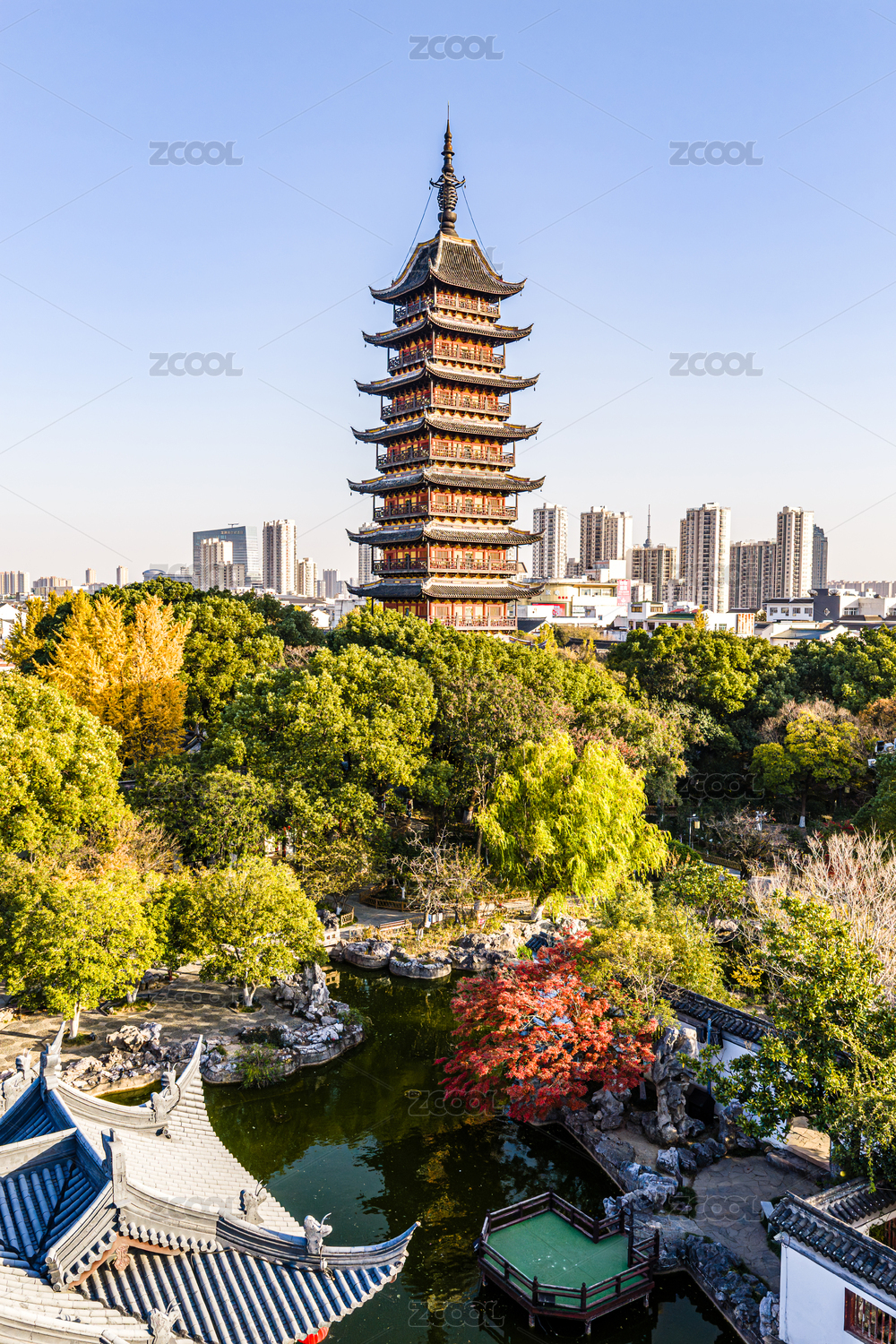 秋天,航拍视角,江苏省,常州,红梅公园文笔塔,无人,建筑,历史,白昼,旅行