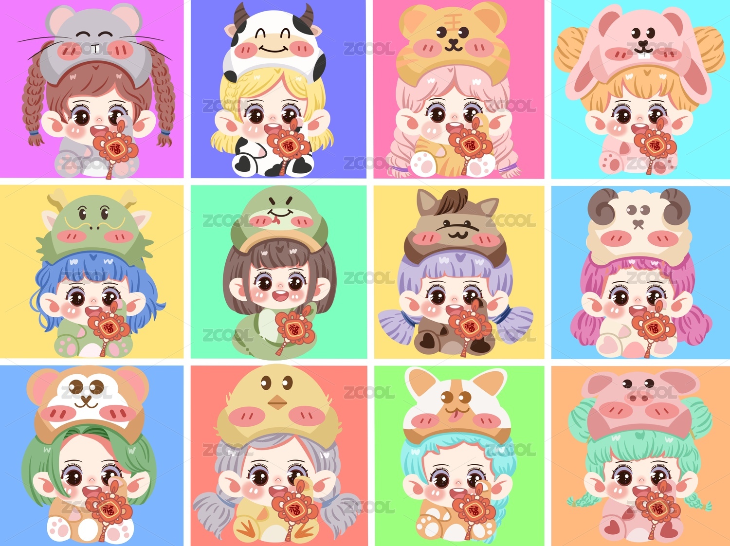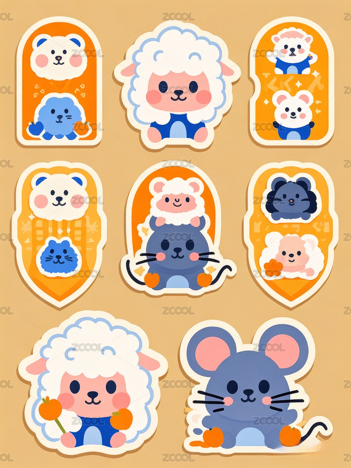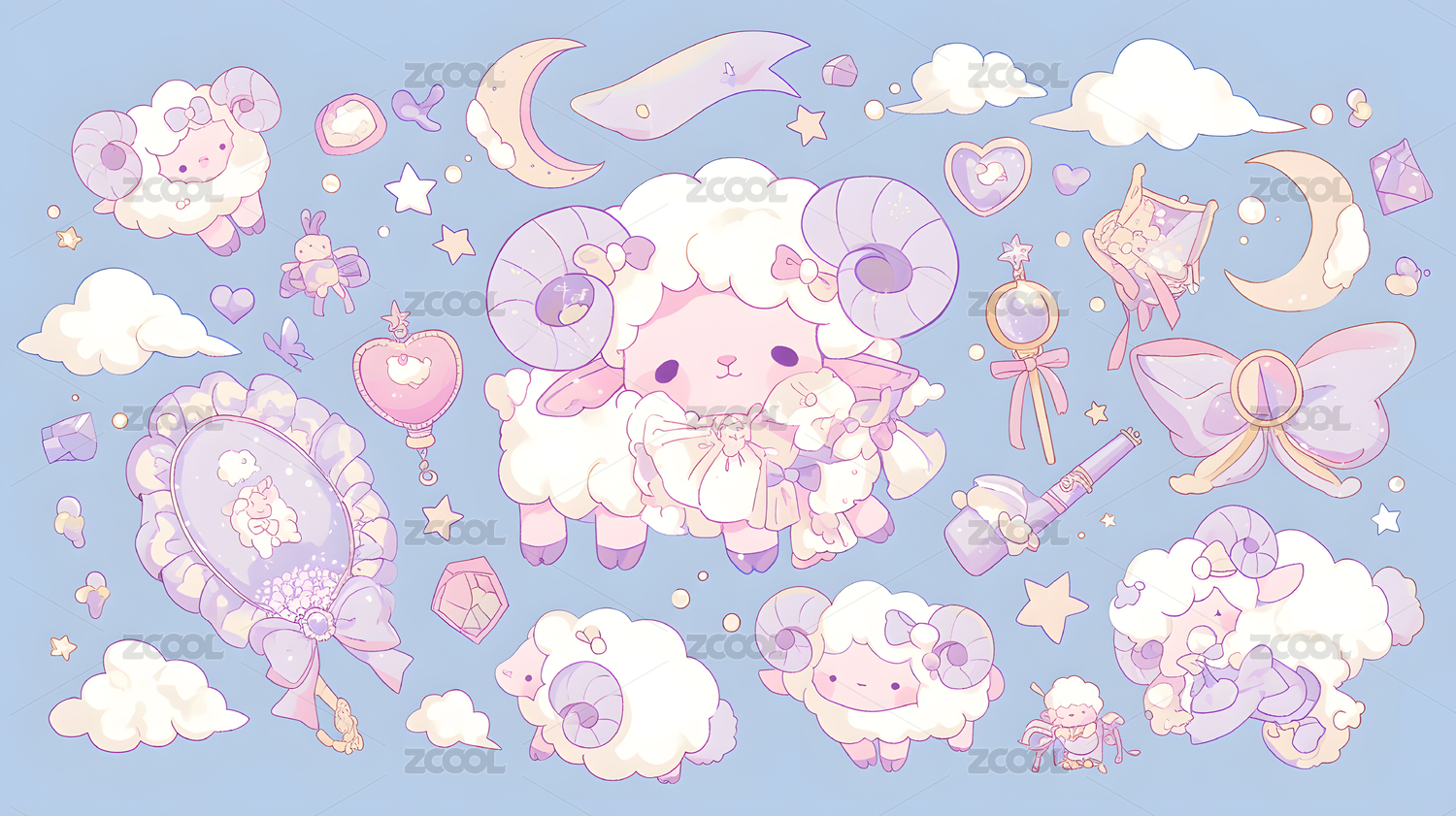 卡通羊,卡通动物,绵羊,羔羊,藏羚羊,羊群,彩色,插画,卡通,可爱