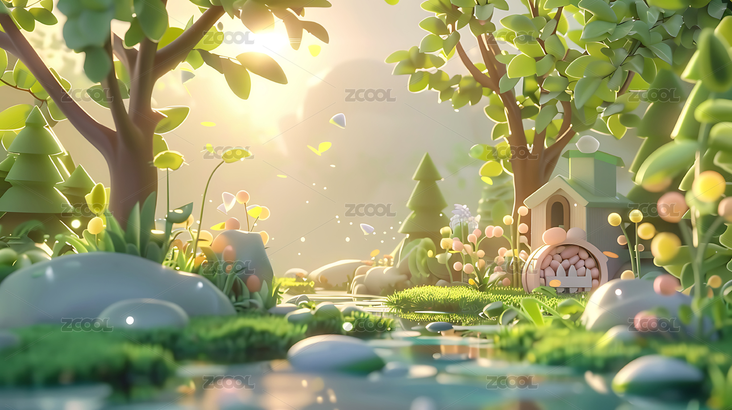 3d,梦幻,卡通,童话,清新,自然,游戏,儿童,多巴胺,糖果色