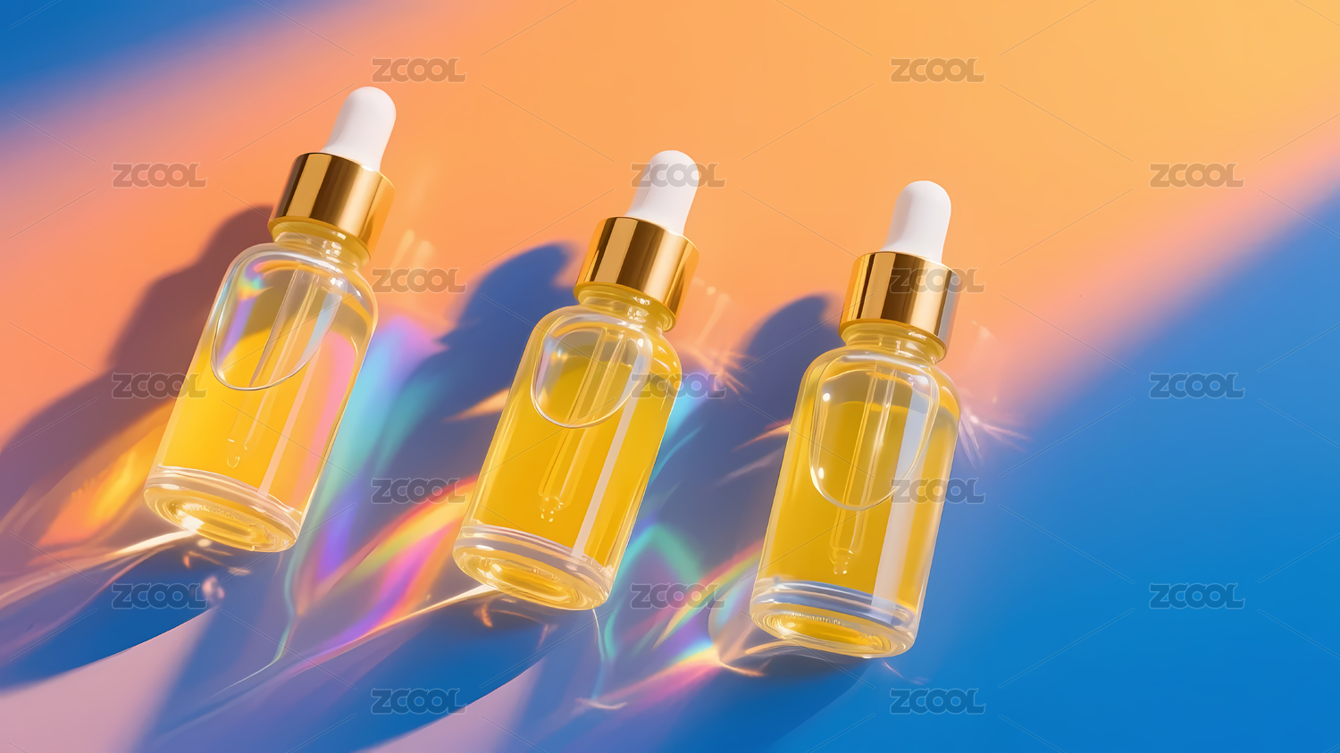 三瓶液体与彩虹光晕