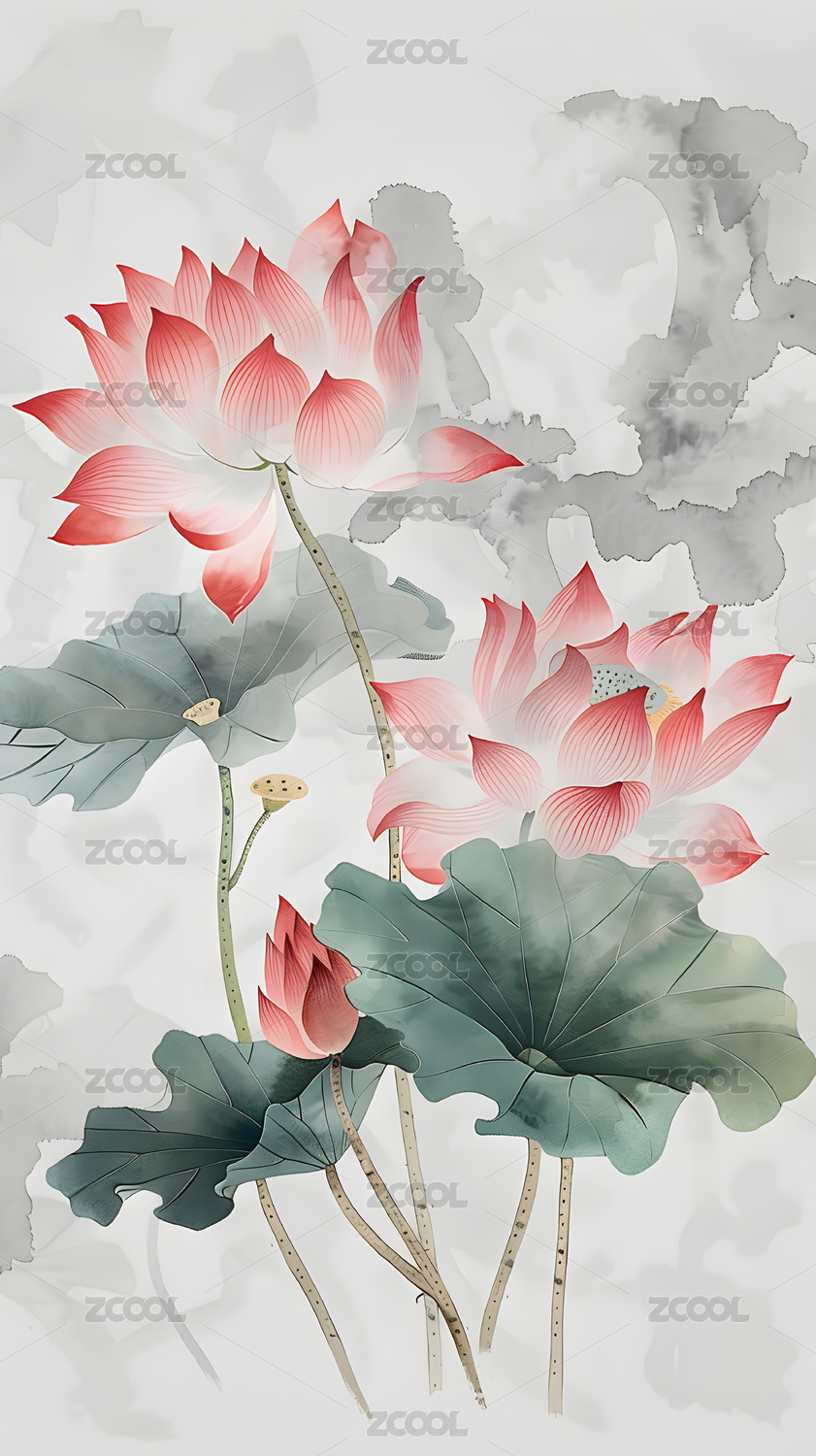 夏日荷花荷叶清新自然透明极简艺术花卉背景