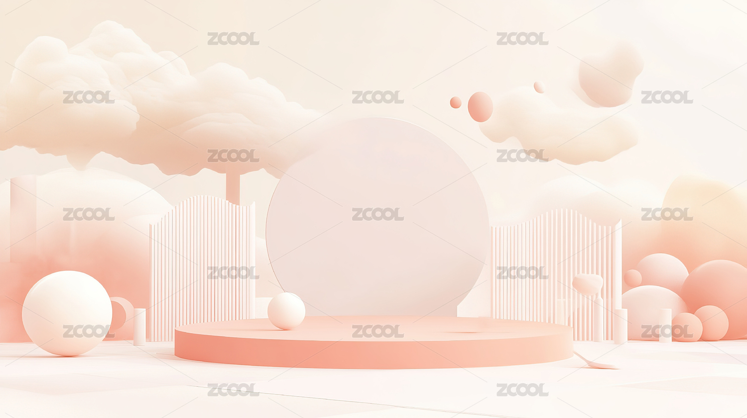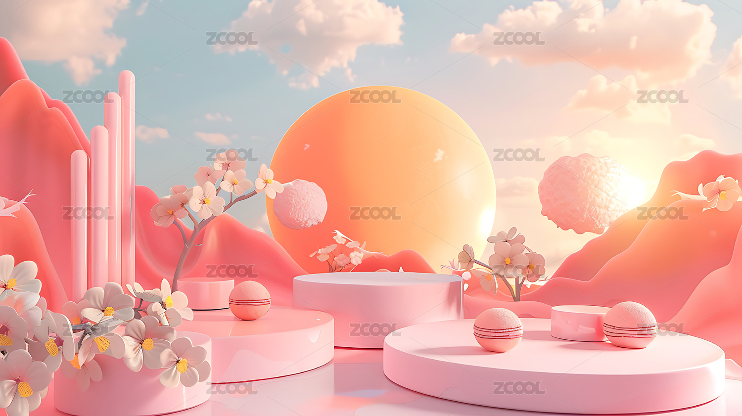 膨胀,夏日,植物,梦幻,卡通,3d,展台,电商,清新