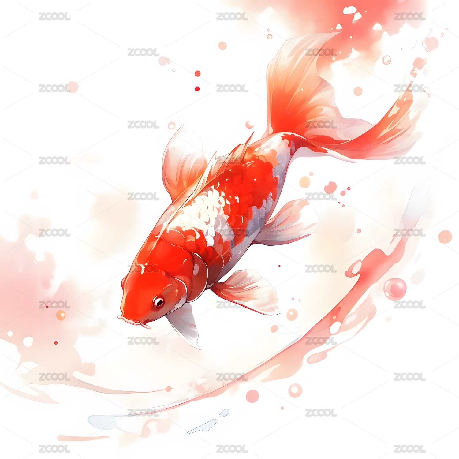 游动的红色锦鲤白底图