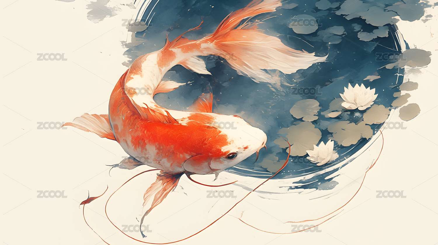 锦鲤国风调插画艺术场景