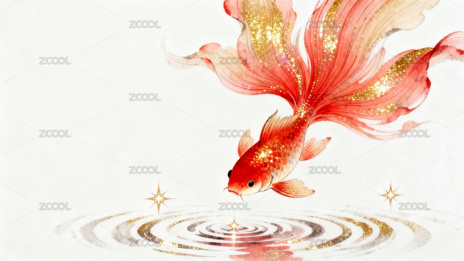 金鱼跃动水彩画风