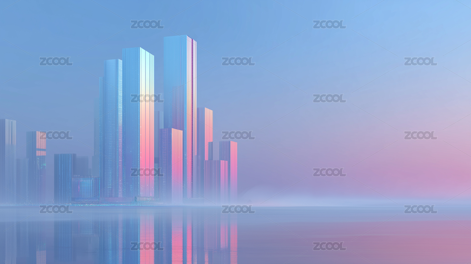 城市天际线的梦幻倒影