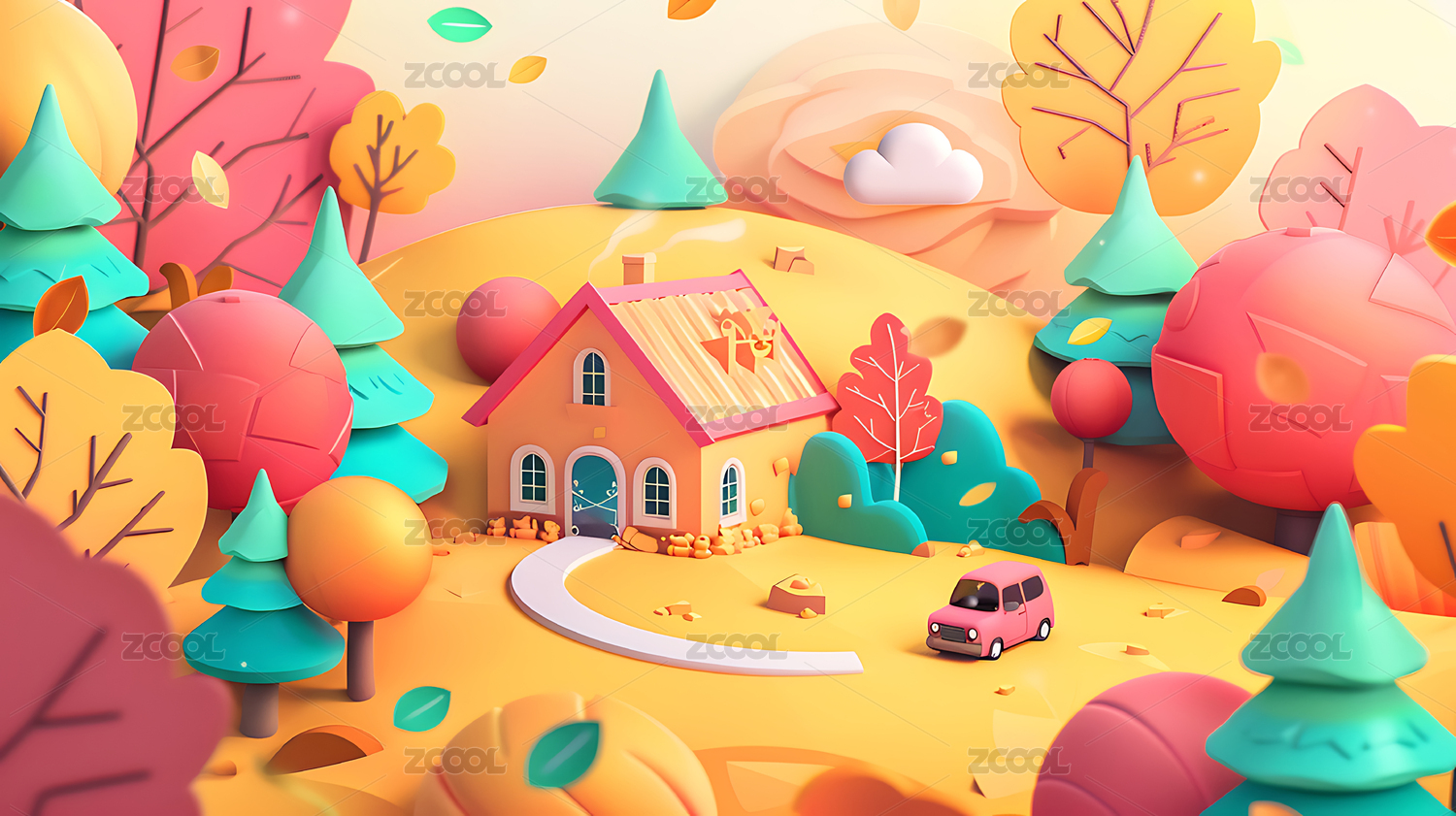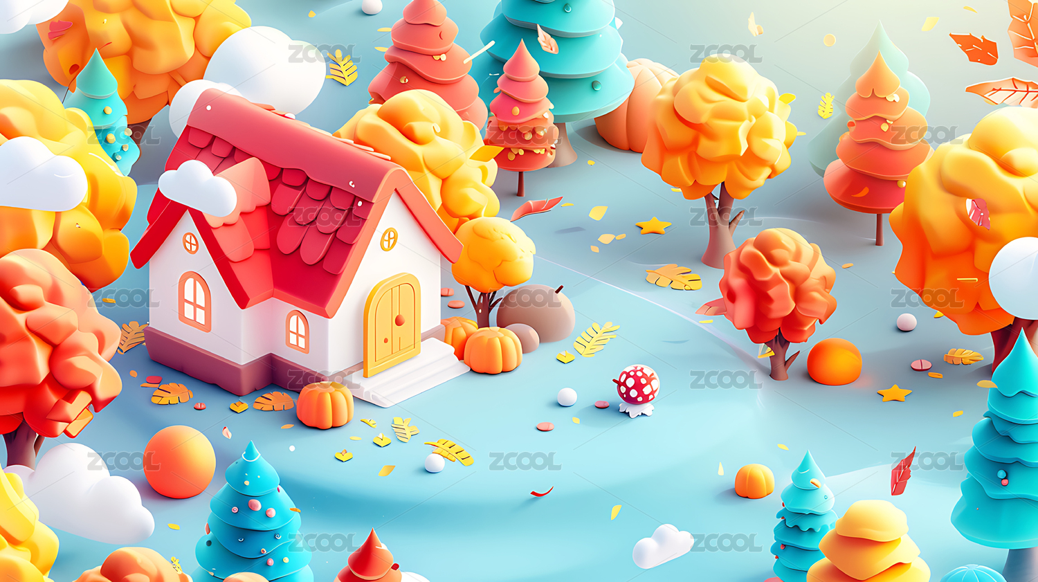 3d清新卡通秋天背景