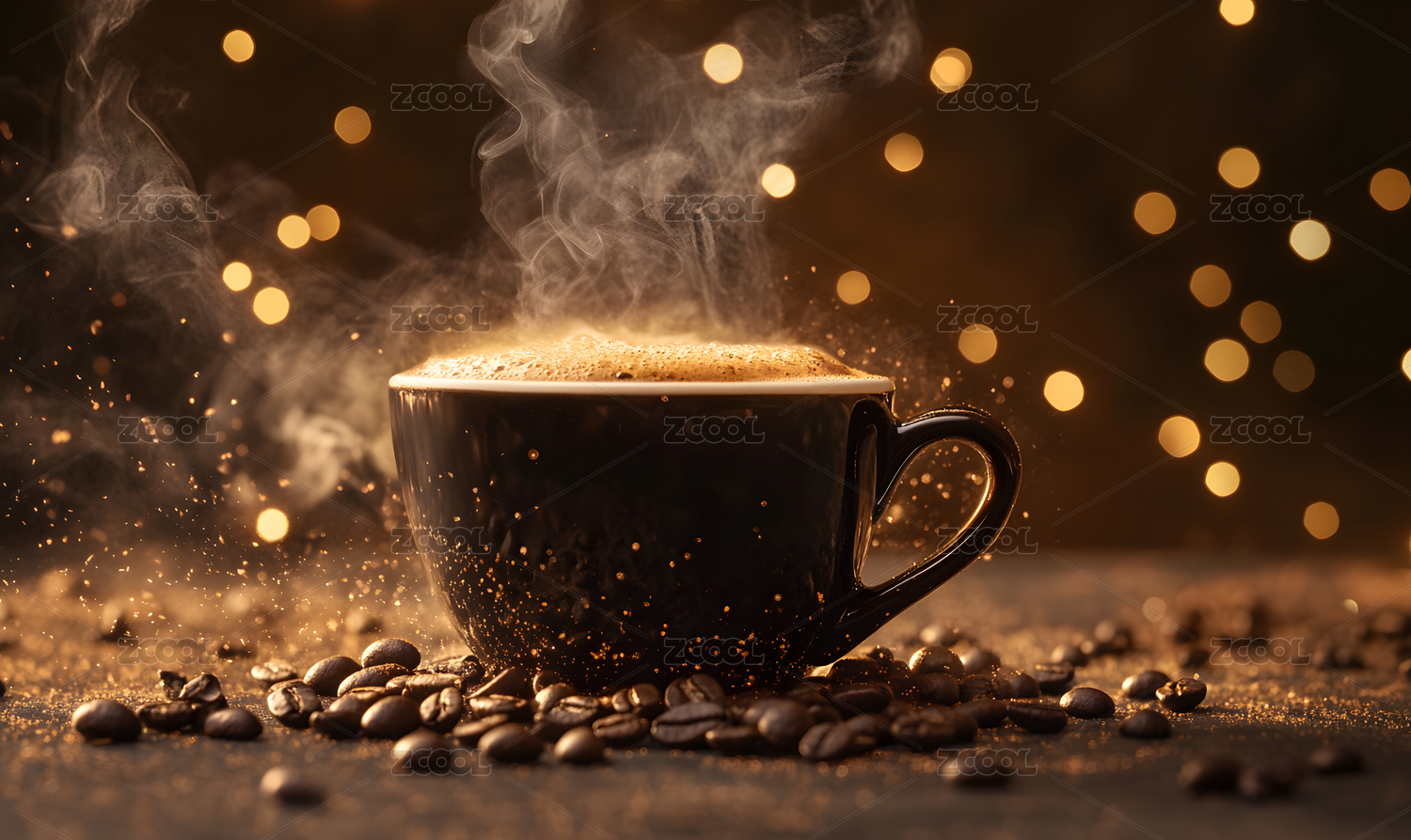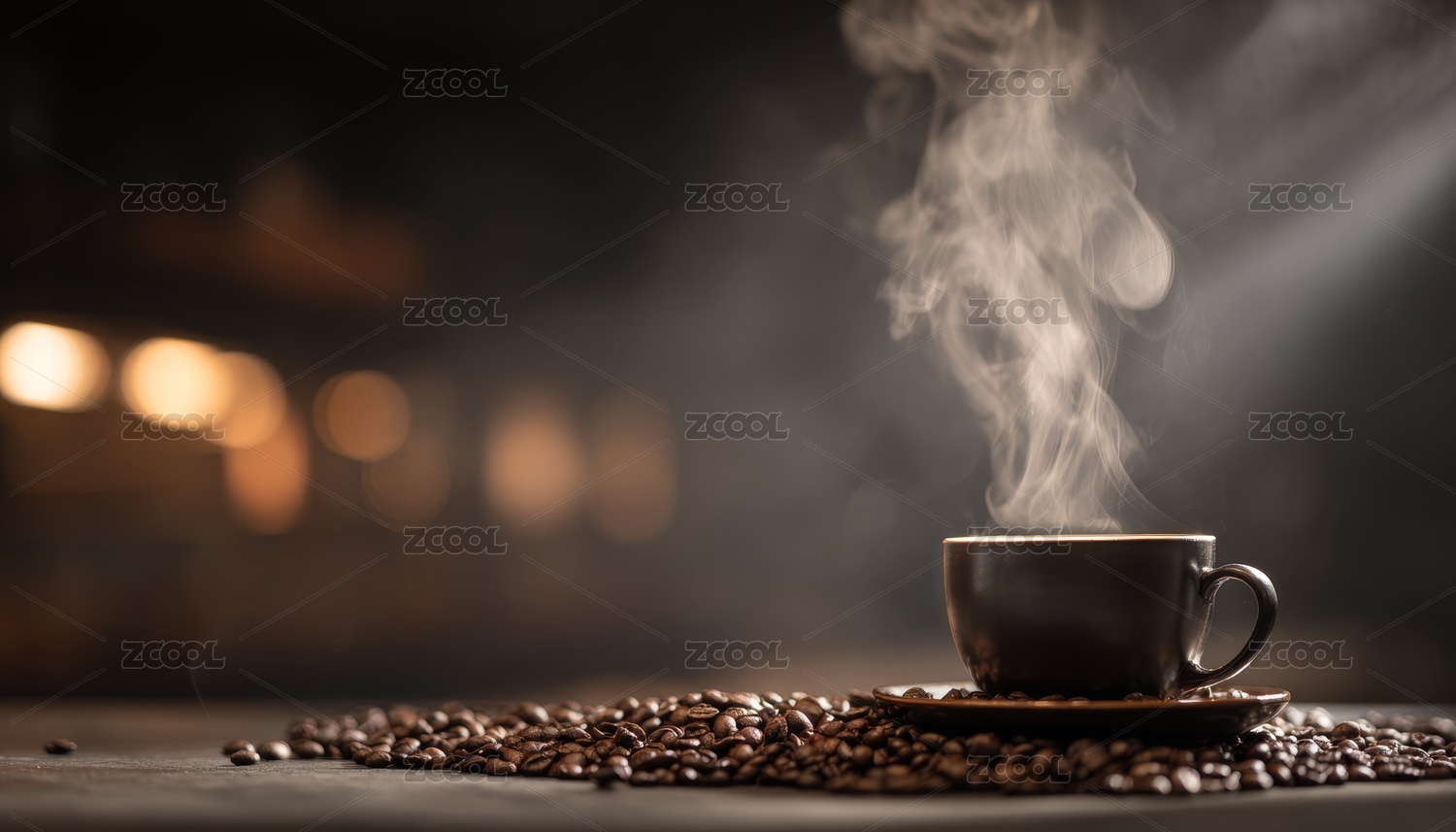 宁静,咖啡杯,咖啡豆,蒸汽,阳光,窗户,木桌,早晨,温暖,香气