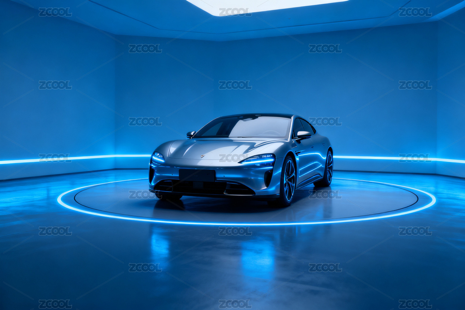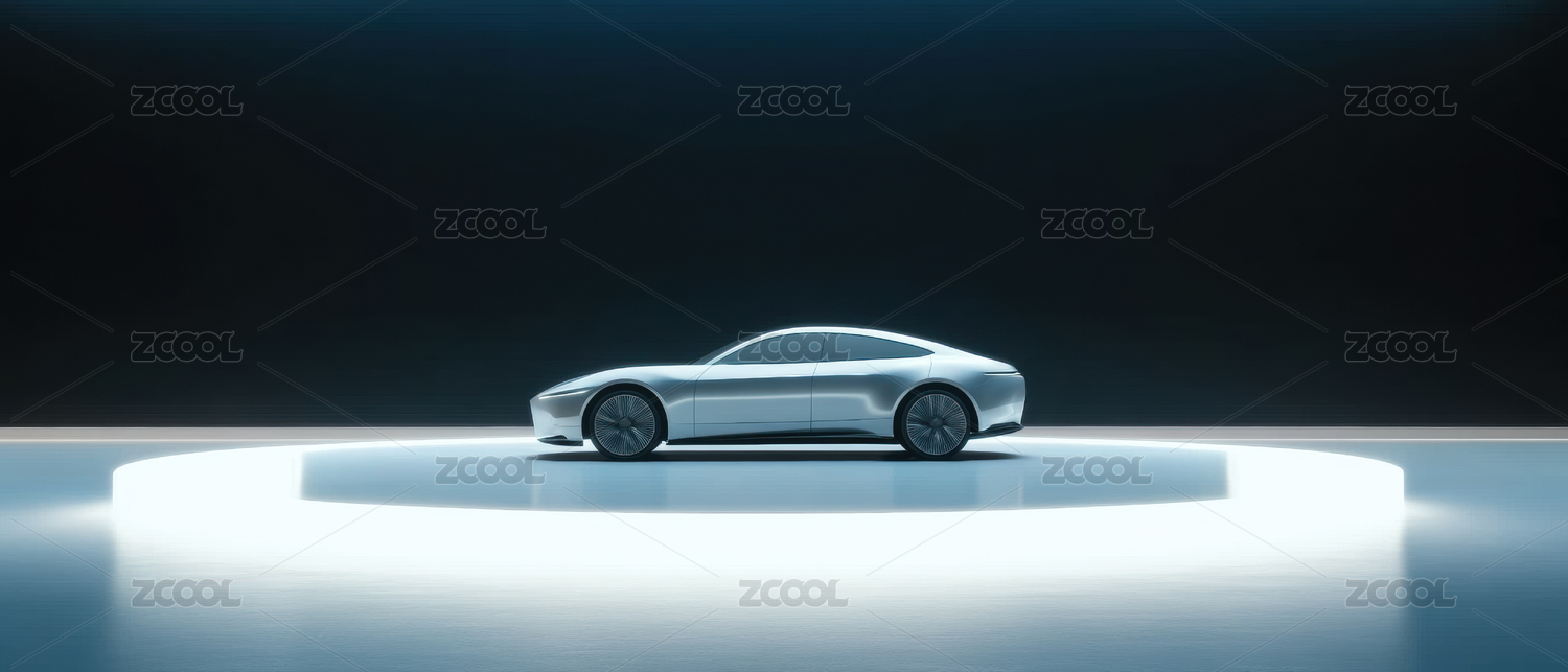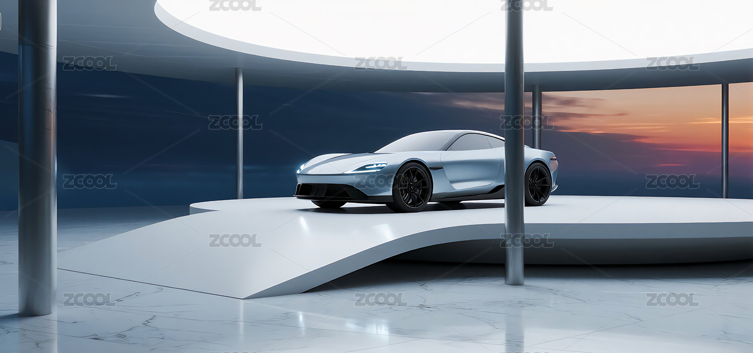 蓝色光影中的银色跑车展示