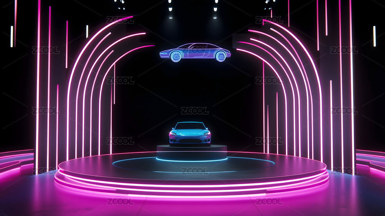 霓虹灯下的概念跑车展示