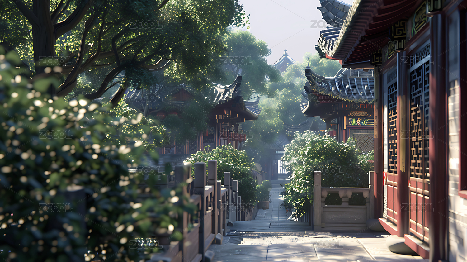 古镇,国风,中式,古风,传统,3d,插画,建筑,历史,中国