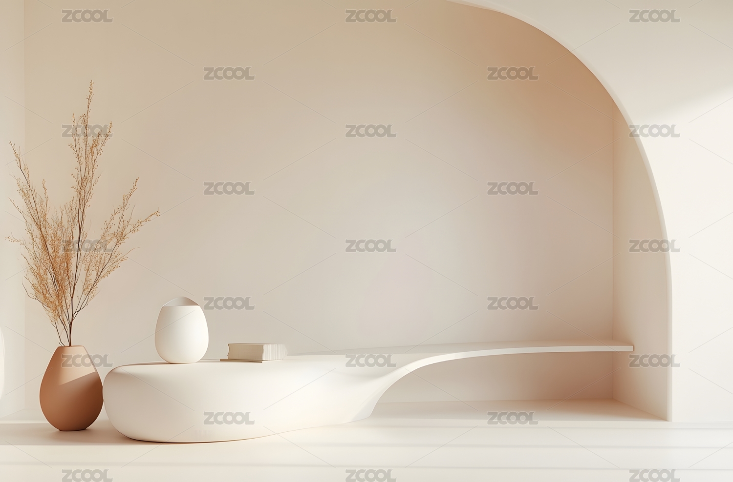 现代简约风格的白色花瓶和木质搁板