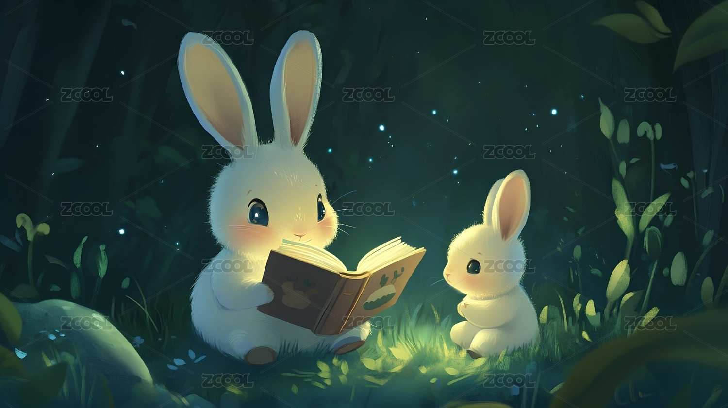 绘本风兔宝宝兔妈妈看书