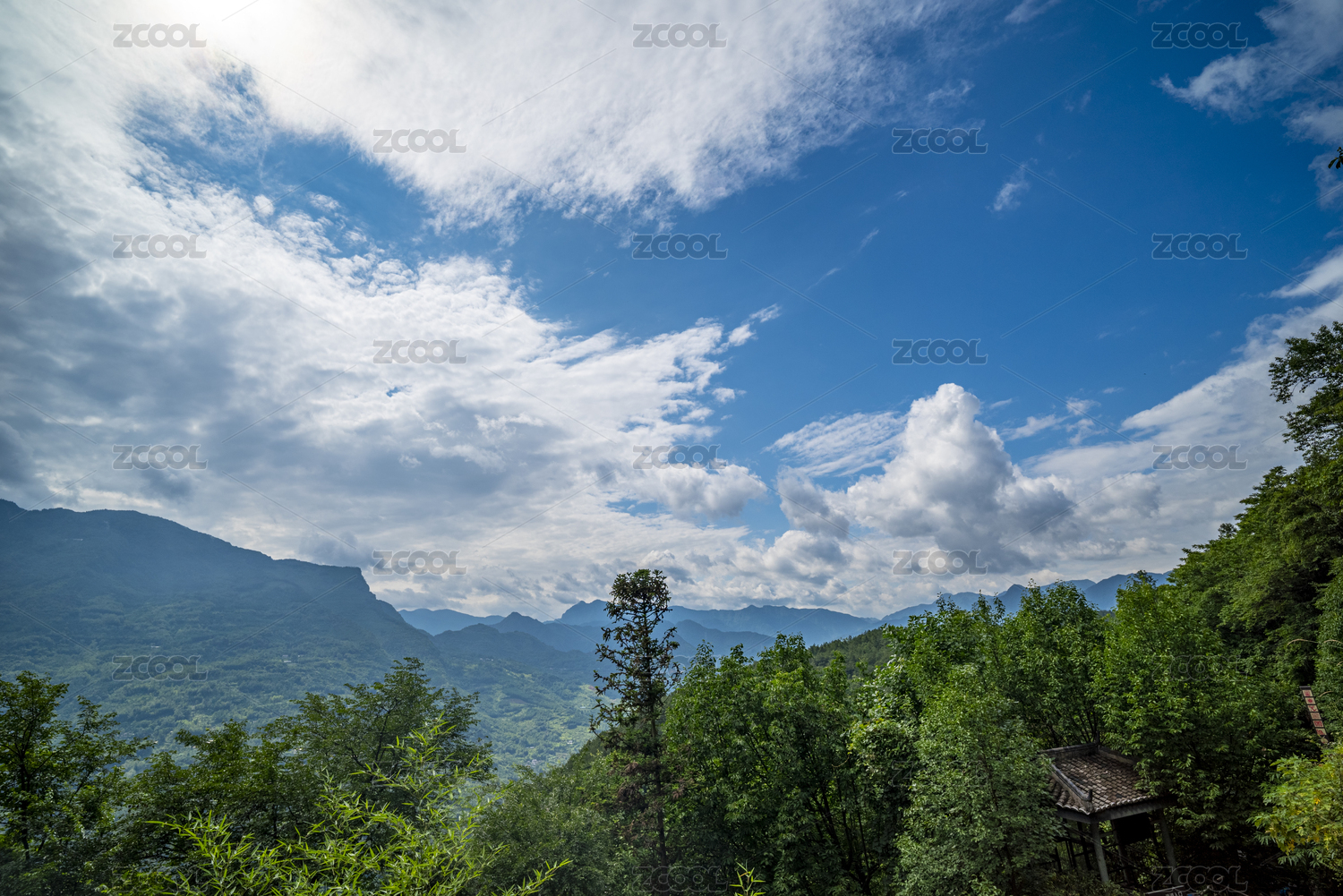 蓝天白云下安徽黄山市黟县西宏古道美丽山景