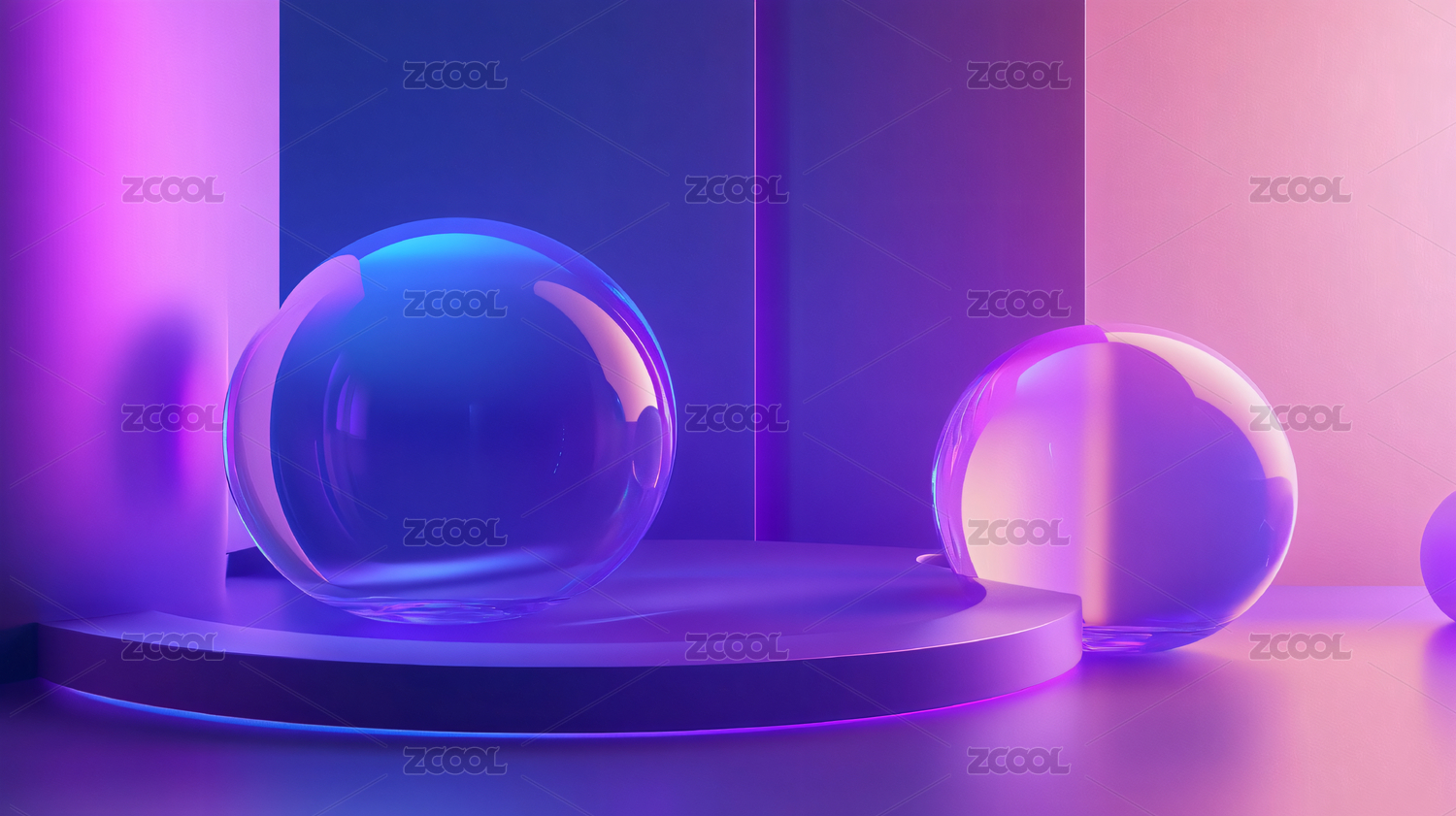 粉色圆形讲台透明泡泡