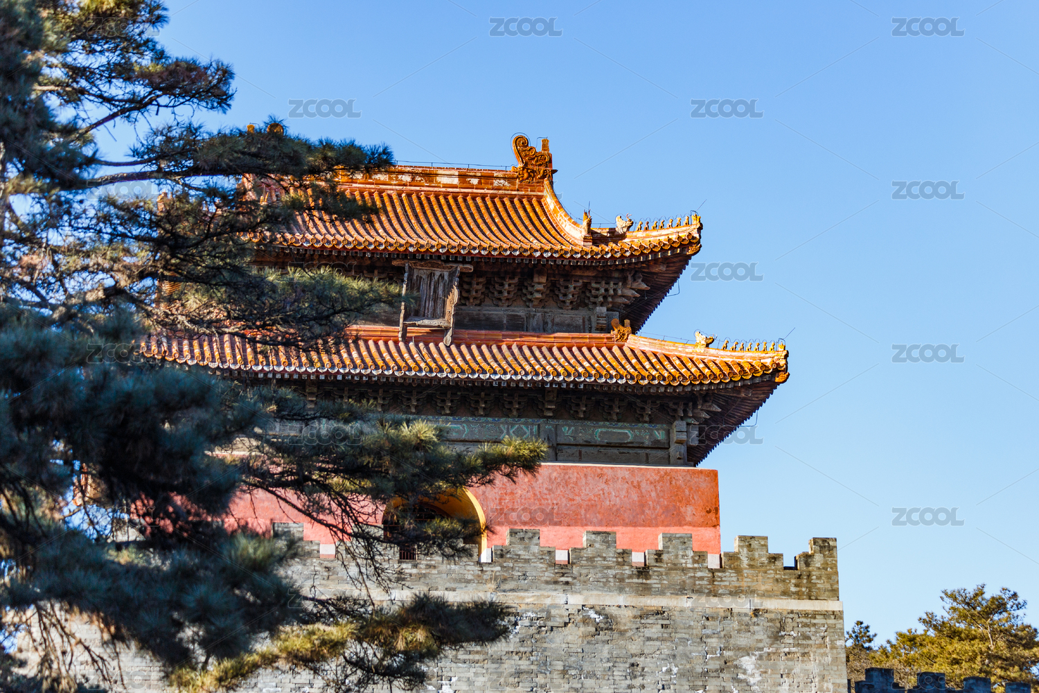秋天蓝天下的北京颐和园公园的古亭台楼阁建筑