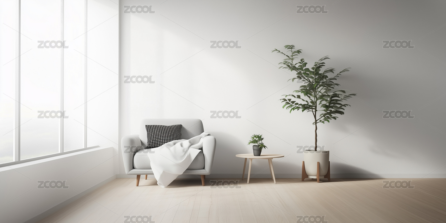 现代房间内部明亮干净设计沙发靠着墙壁背景