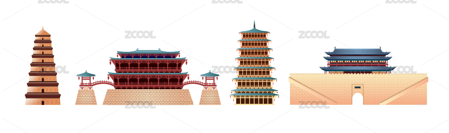 中国陕西西安市国潮旅游地标插画