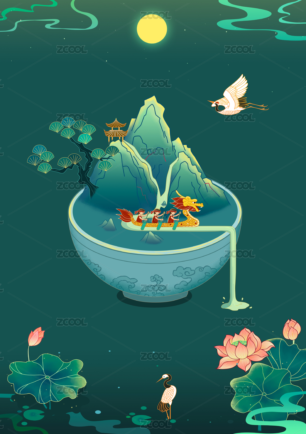 微景观莲花底座山水凉亭牛郎织七夕鹊桥相会