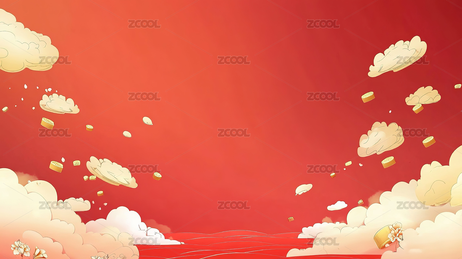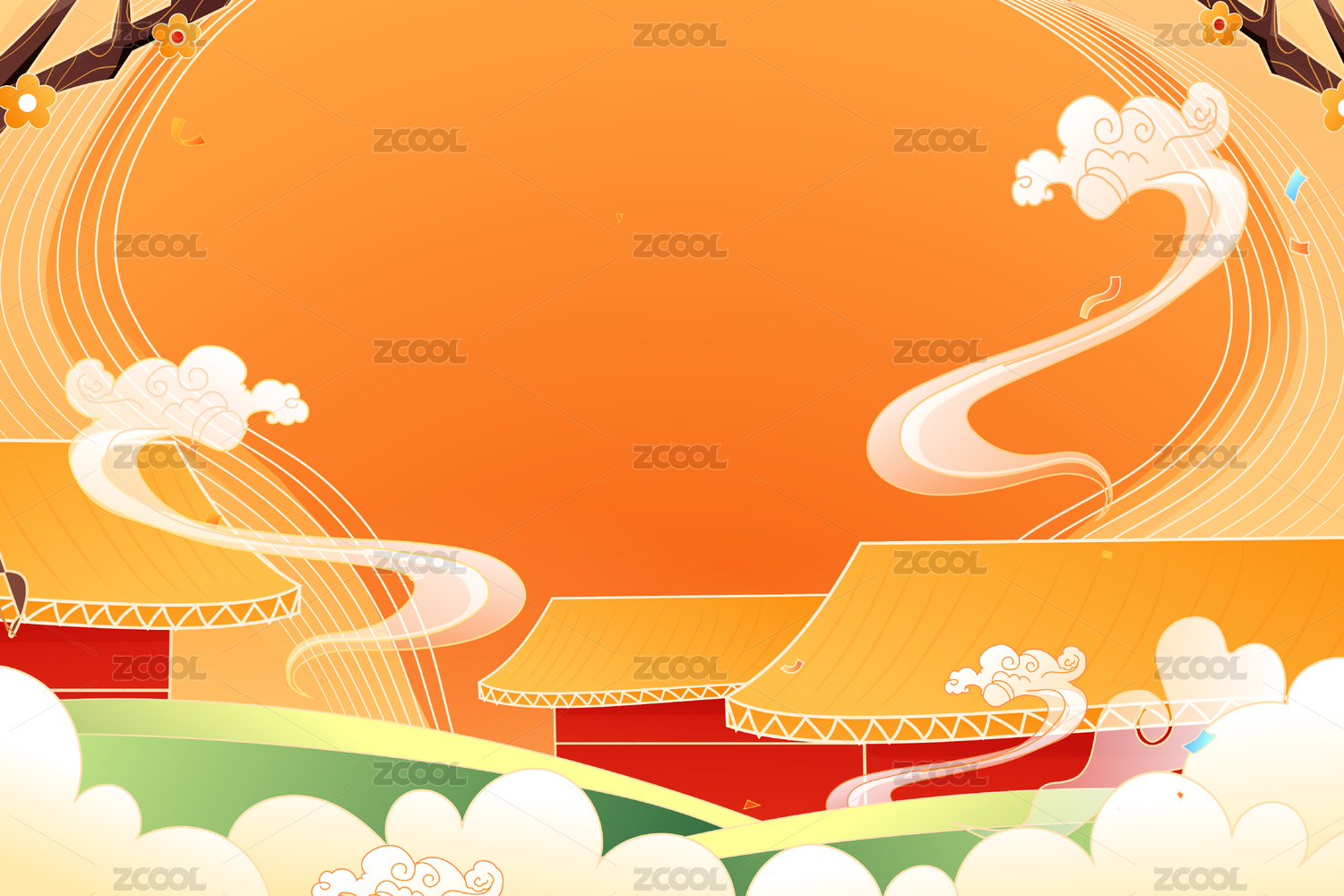 国潮风新年春节题材喜庆山水祥云插画背景插画