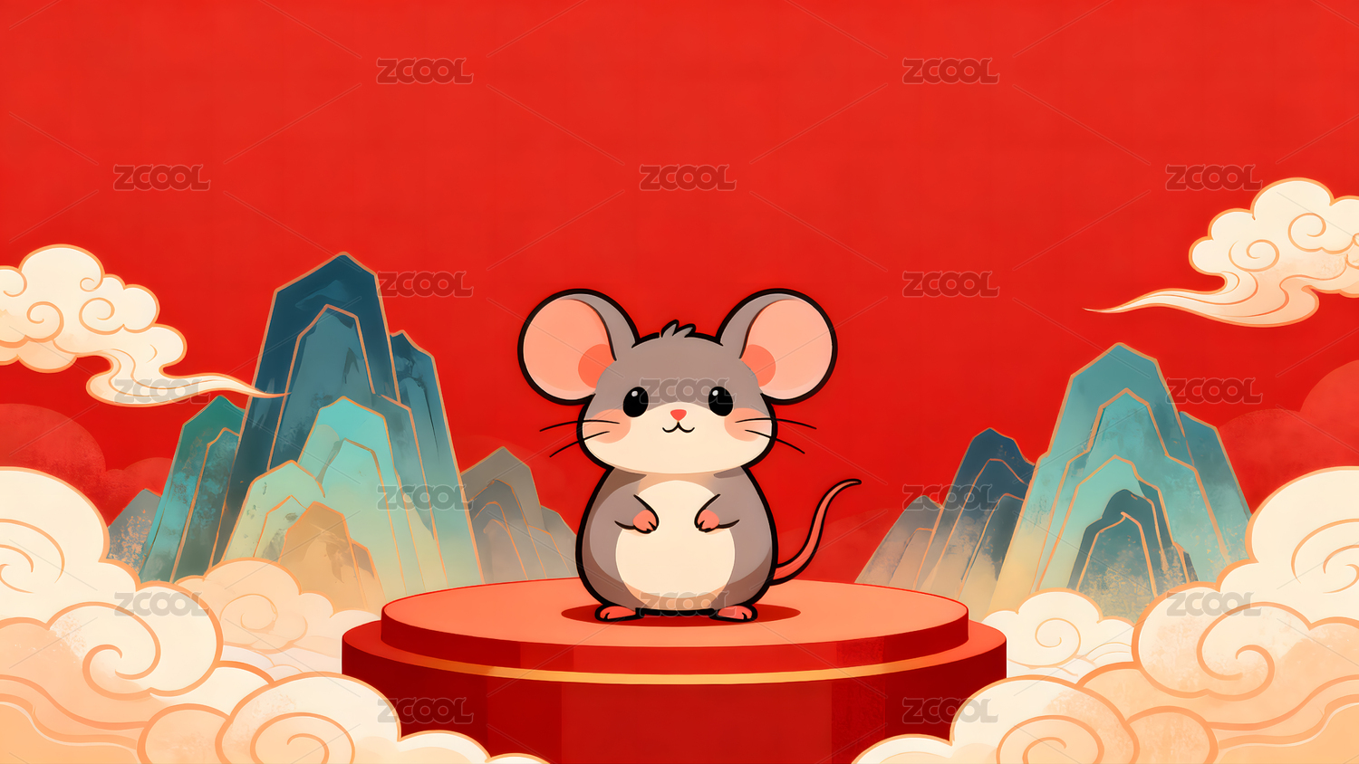 卡通2020鼠年新年春节元旦中国风背景矢量插画