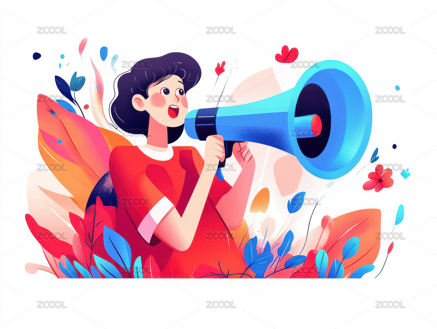 人物拿着喇叭大声喊叫海报促销营销活动插画