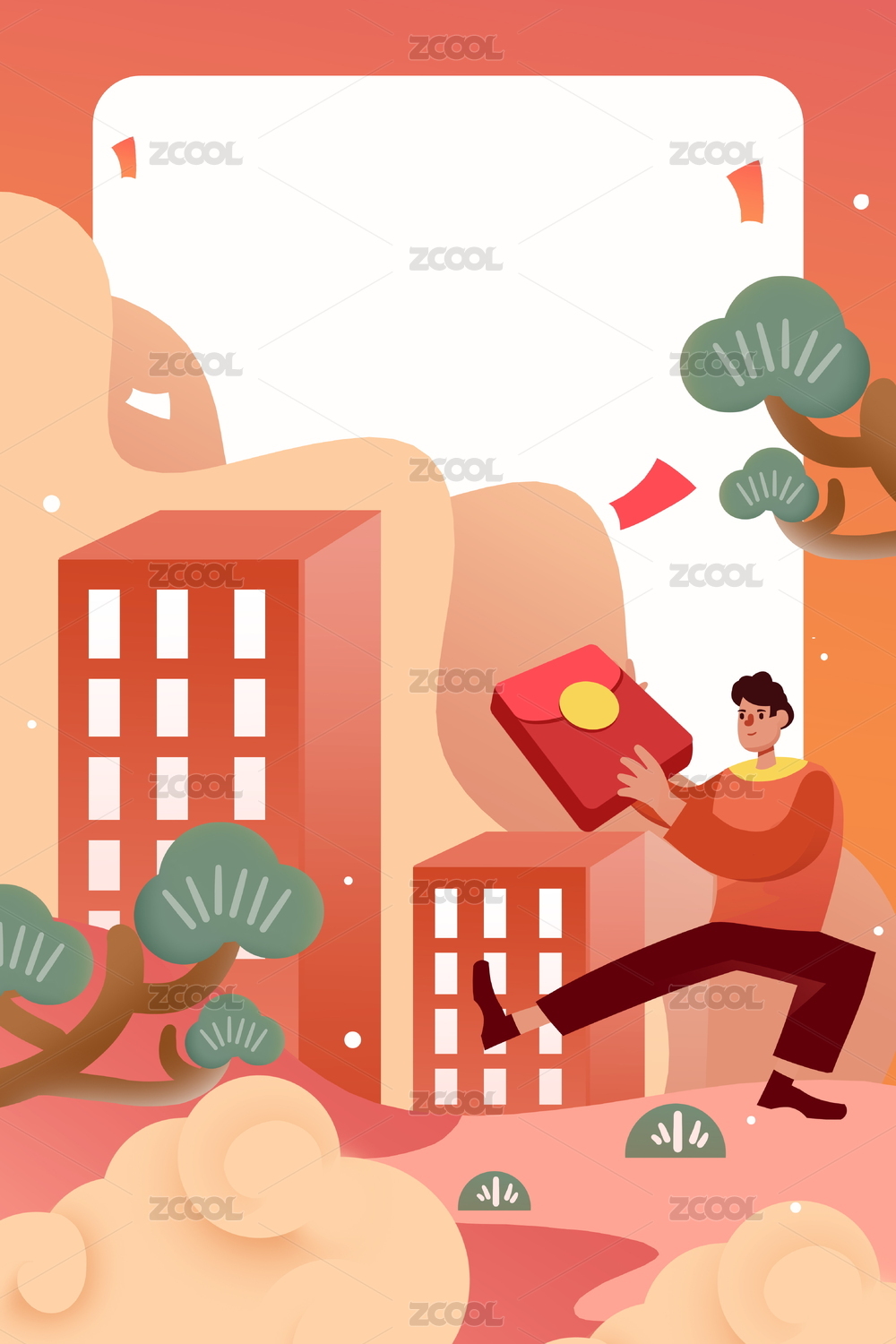 卡通拿着礼物跳跃的人金融活动矢量插画