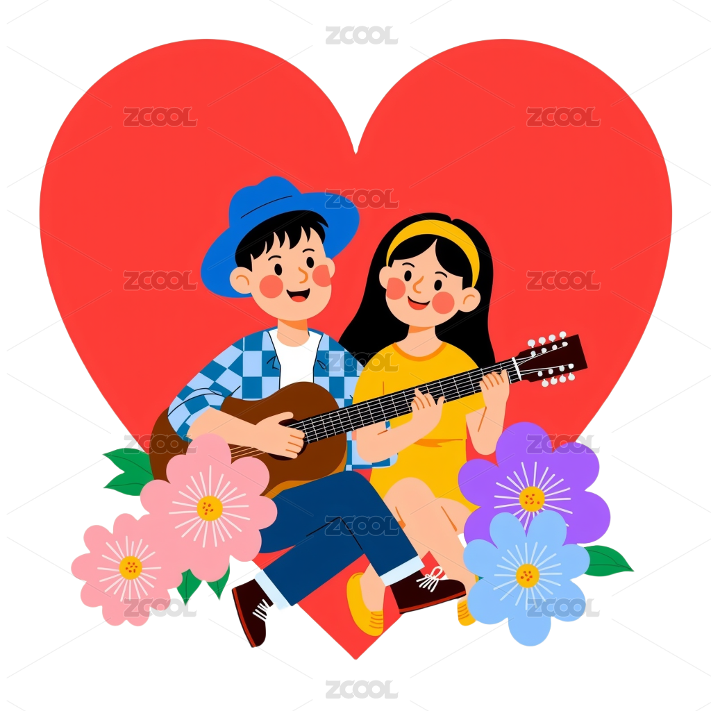 一群青年在草地弹奏音乐唱歌跳舞插画