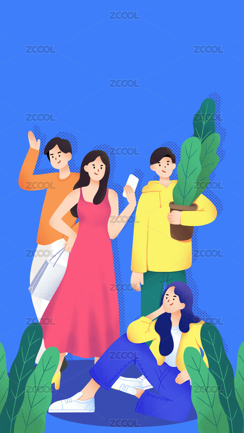 一群年轻人噪点扁平海报插画