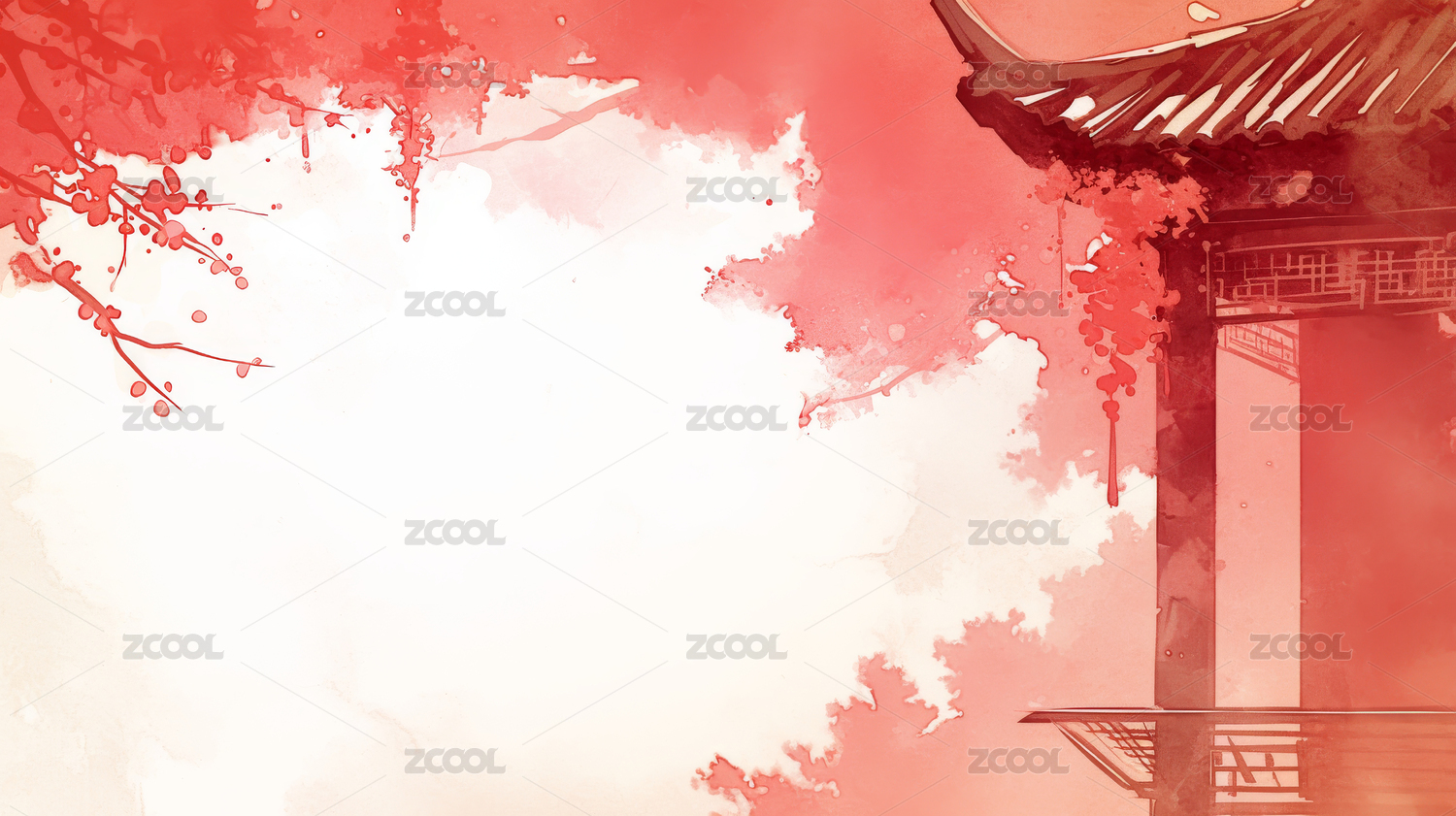 水墨画风格红梅盛开中式建筑