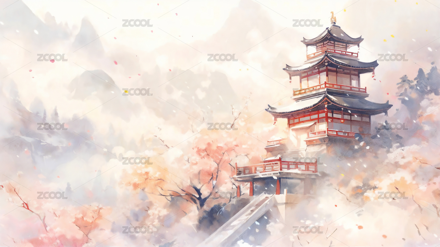 水彩古风场景