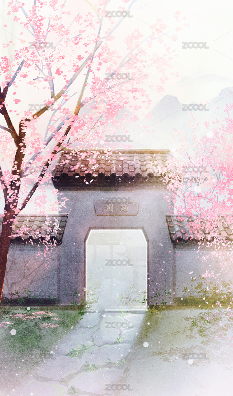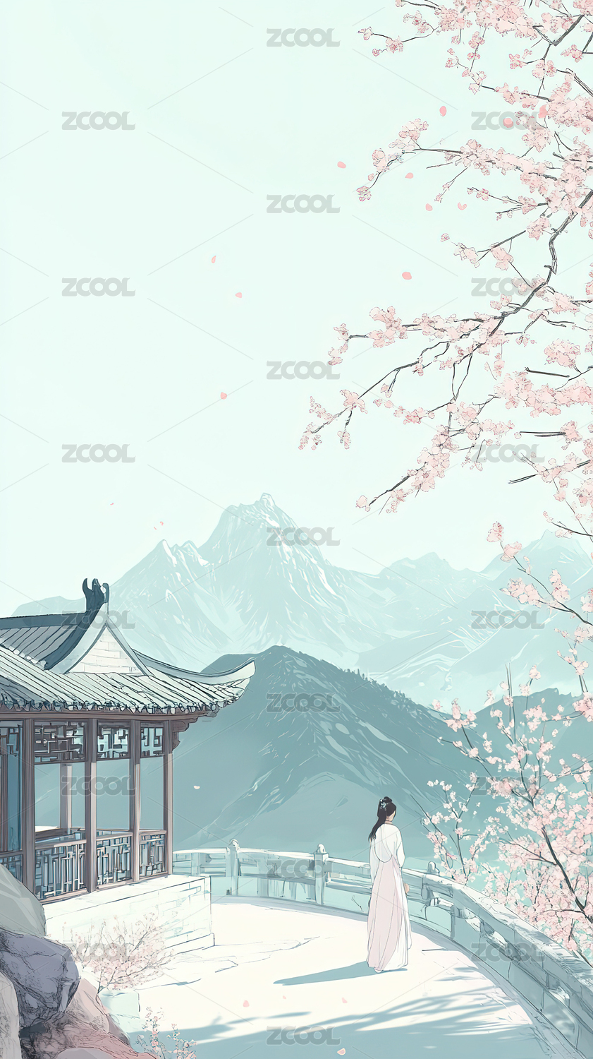 唯美古风春天山水背景