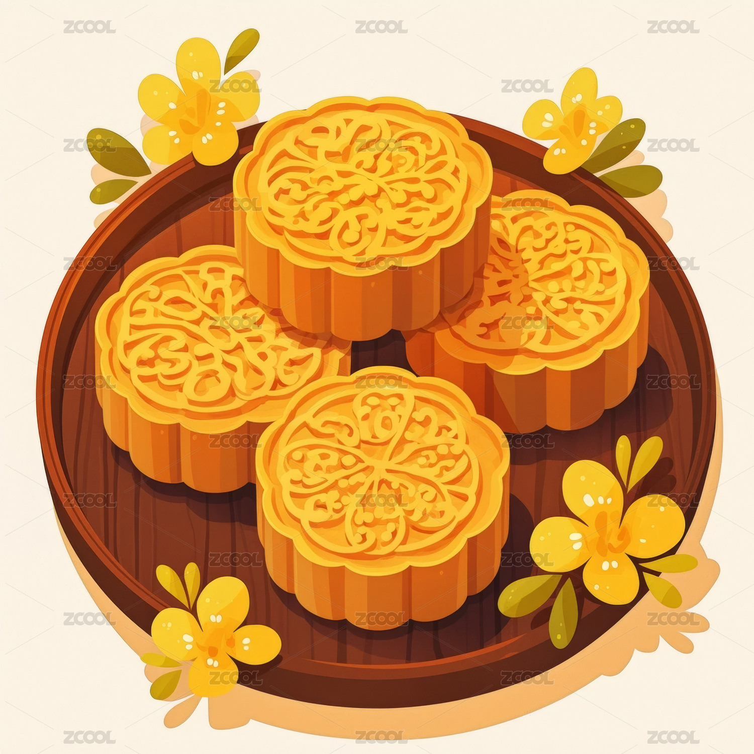 中秋,中秋节,月饼,包装,国潮风,插画,卡通,国风,传统文化,桂花
