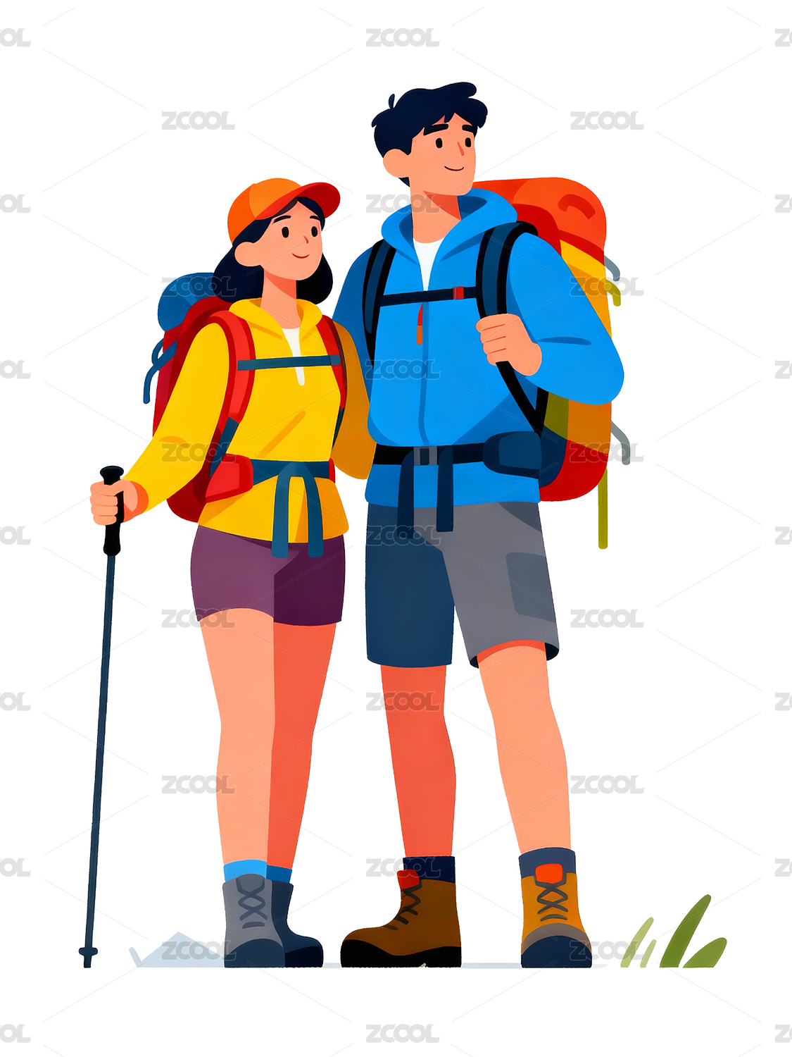 旅游,旅行,扁平风,户外,大自然,卡通,插画,男人,相伴,女人