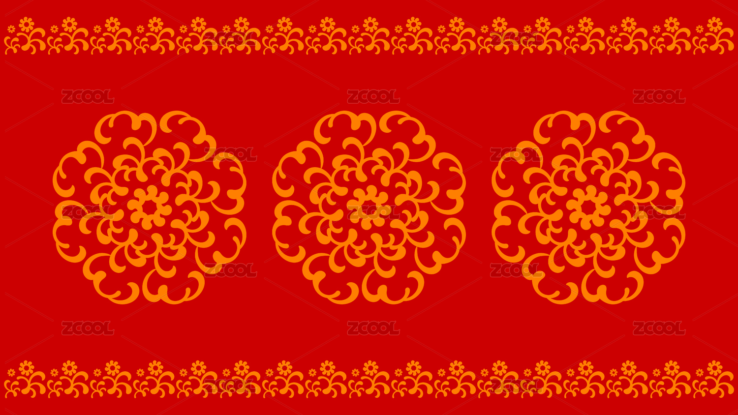 红色喜庆的古典花边牡丹花纹艺术设计图案