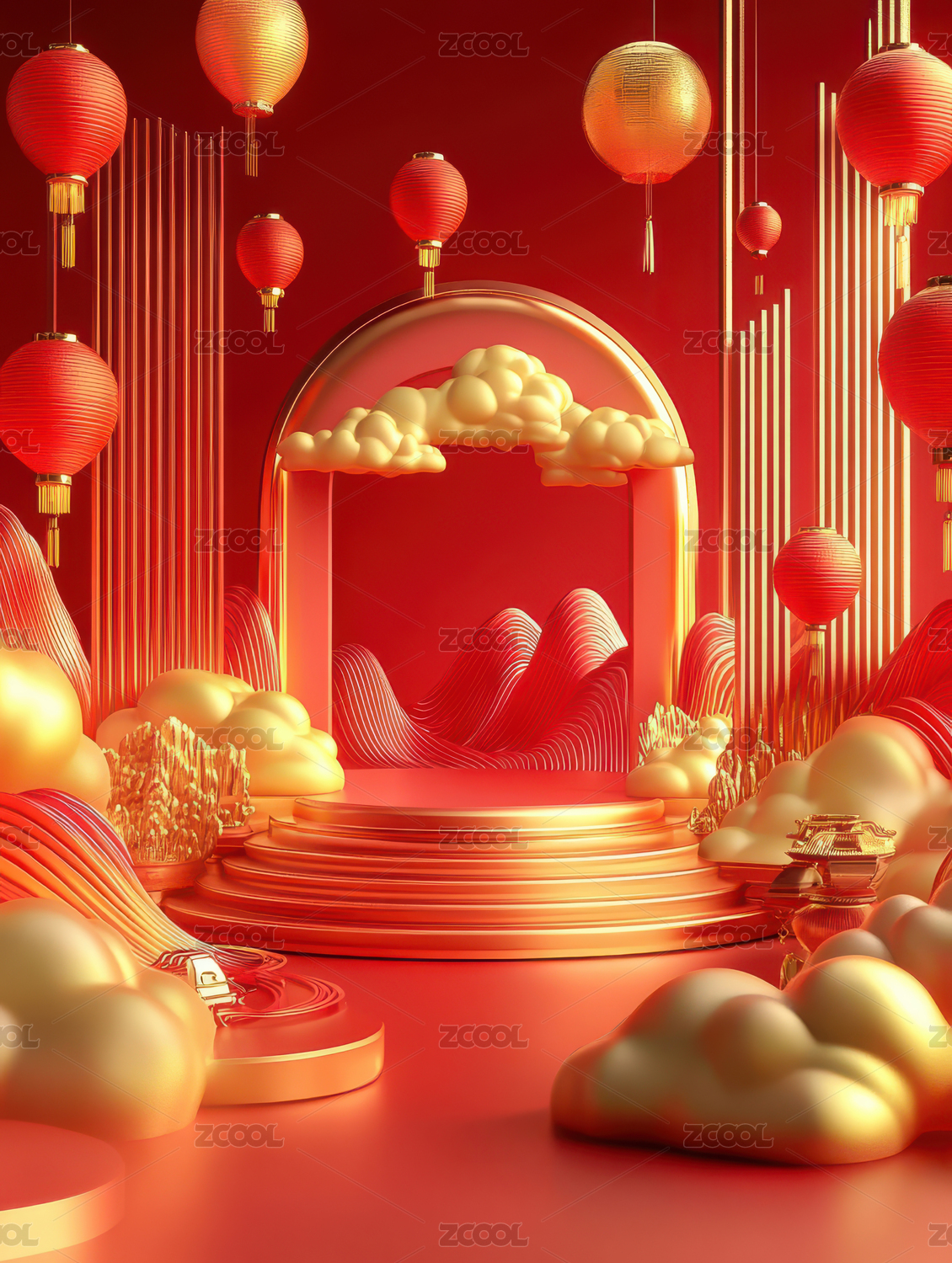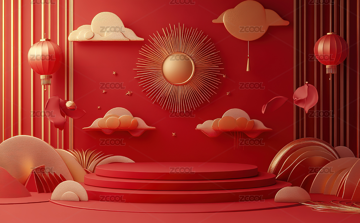 3D中式国风展台电商背景