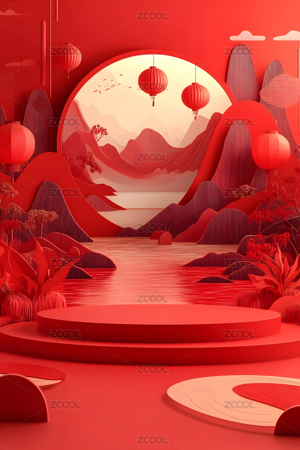喜庆展台红灯笼3D立体图