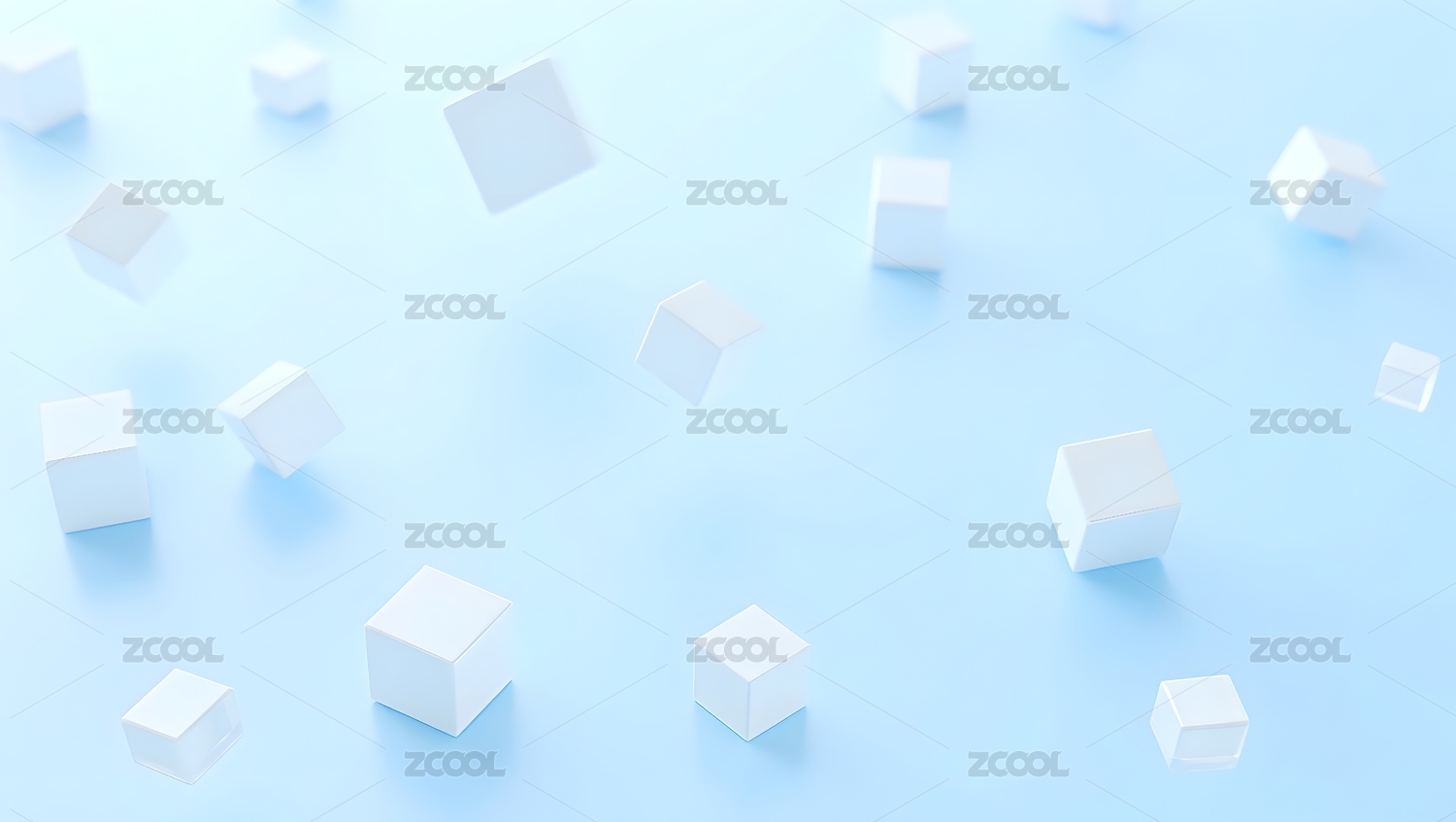 蓝色立方体悬浮在柔和背景中
